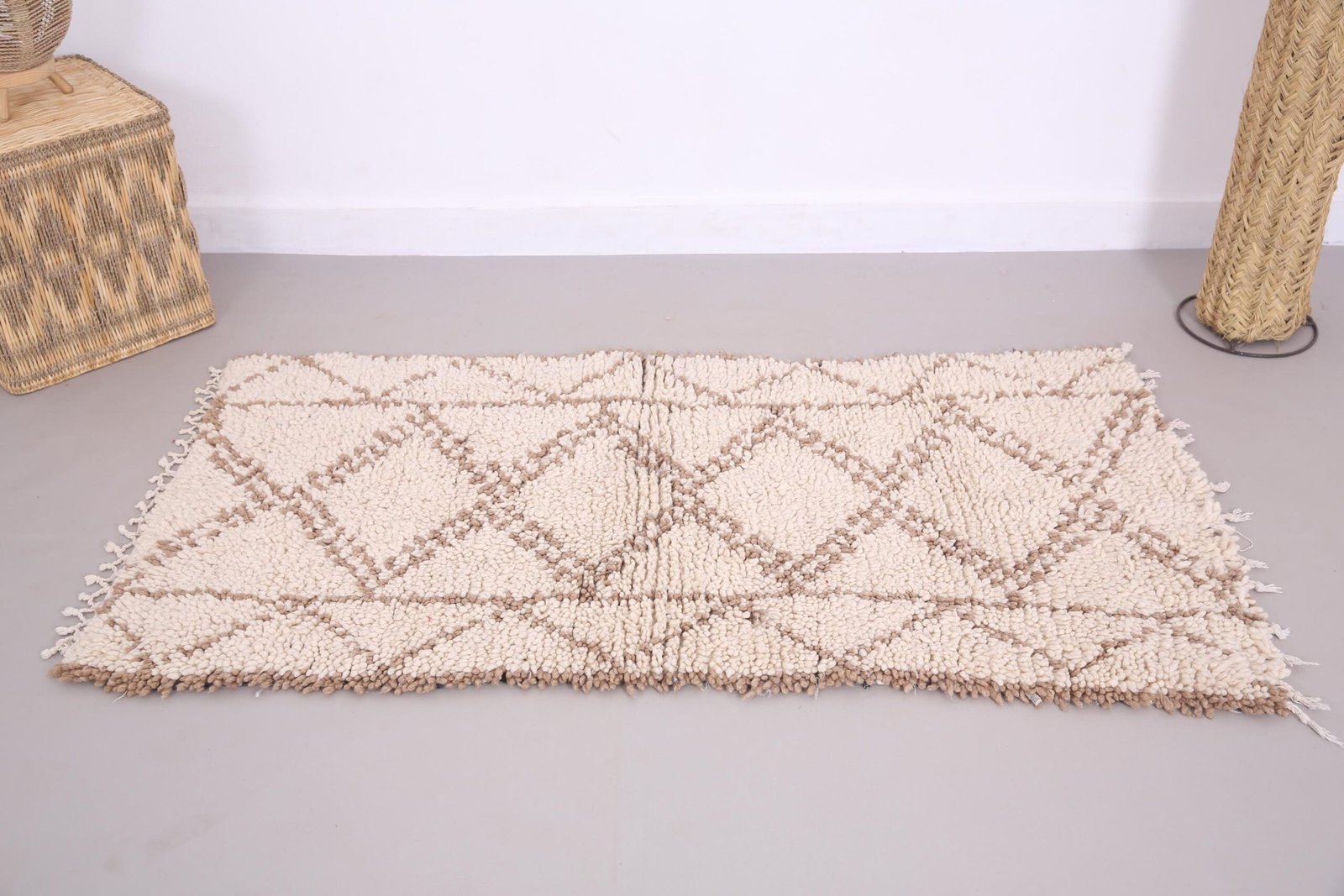 Beige Beni ourain rug 2.6 x 5 ft – moroccan rug – wool rug – Berber tufted rug – Vintage moroccan rug – handmade rug – Genuine lamb wool