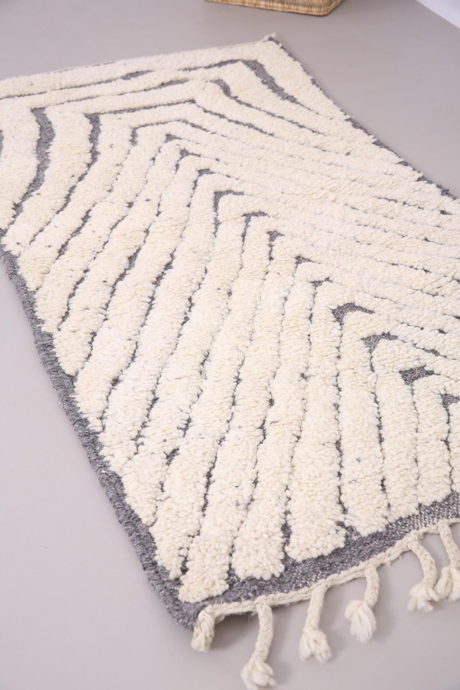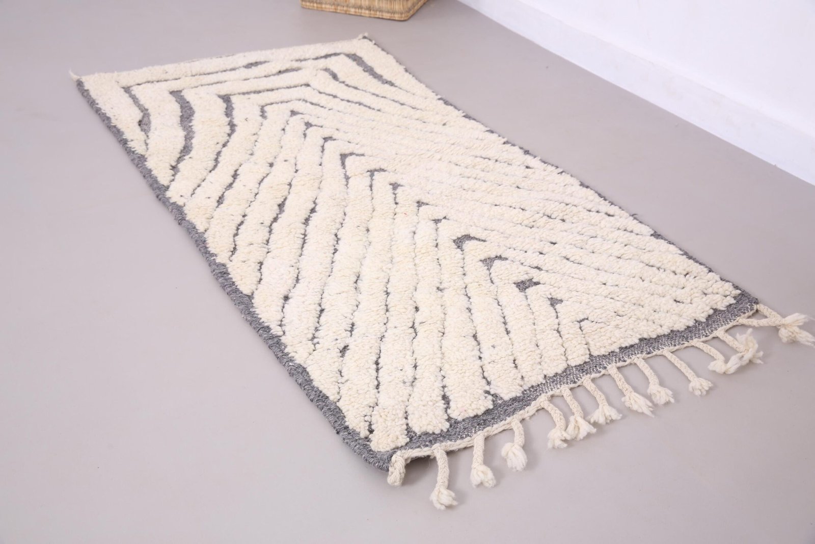 Bring the essence of Moroccan tradition and elegance into your home with this one-of-a-kind Beni Ourain rug.