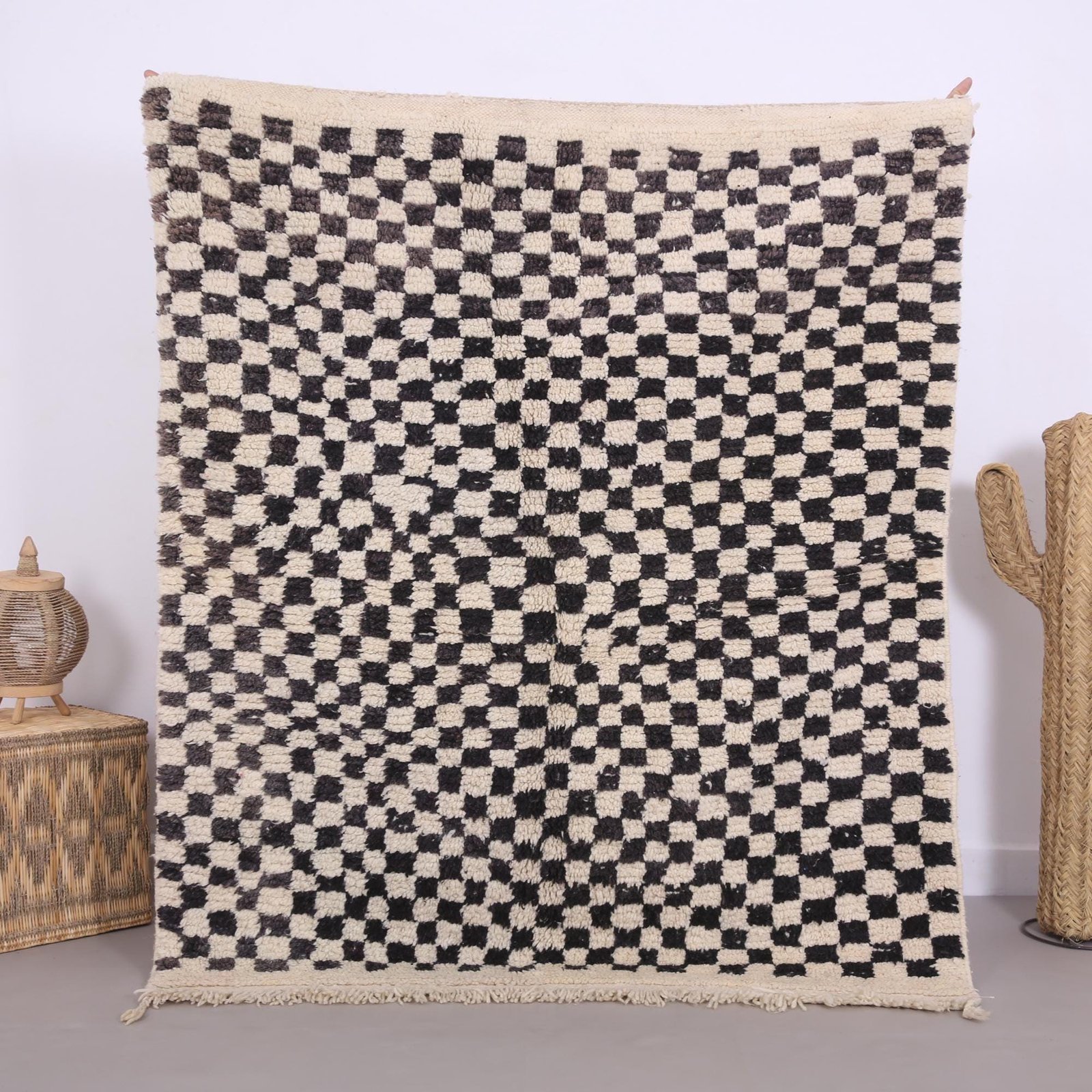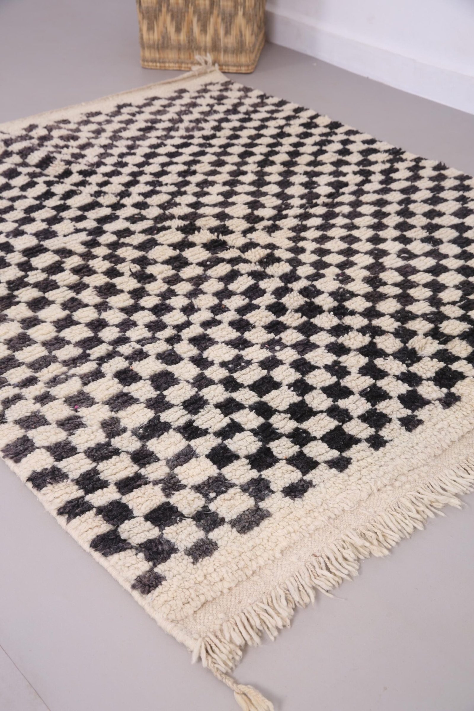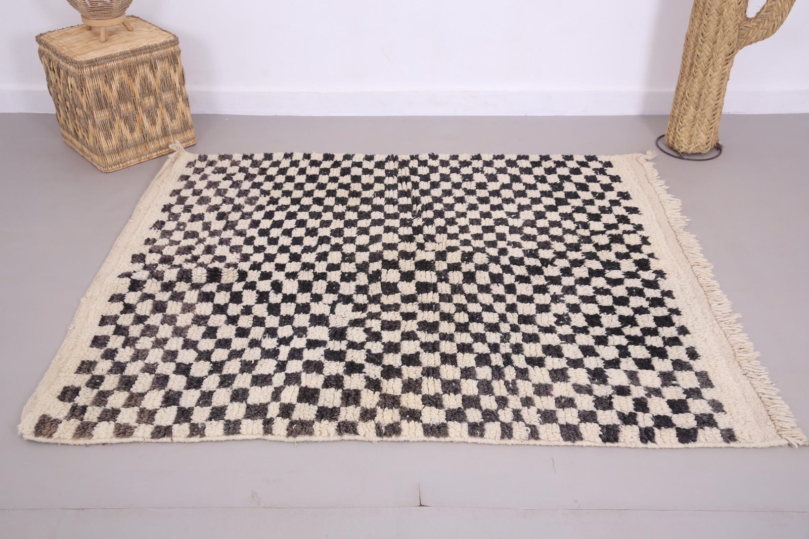 Beige Beni ourain rug 4.7 x 5.6 ft – moroccan rug – wool rug – Berber tufted rug – Vintage moroccan rug – handmade rug – Genuine lamb wool