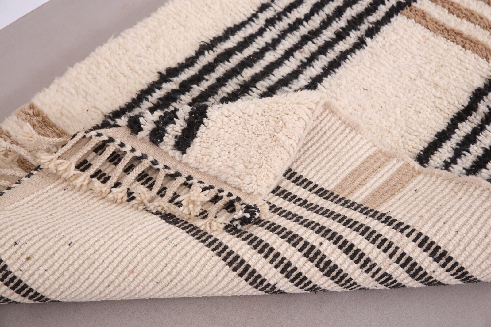 The rug features intricate geometric patterns, tribal motifs, or bold abstract designs, symbolizing the unique stories and traditions of the Berber people. Its earthy tones, vibrant colors, and subtle variations highlight its handmade nature, ensuring that no two pieces are alike.