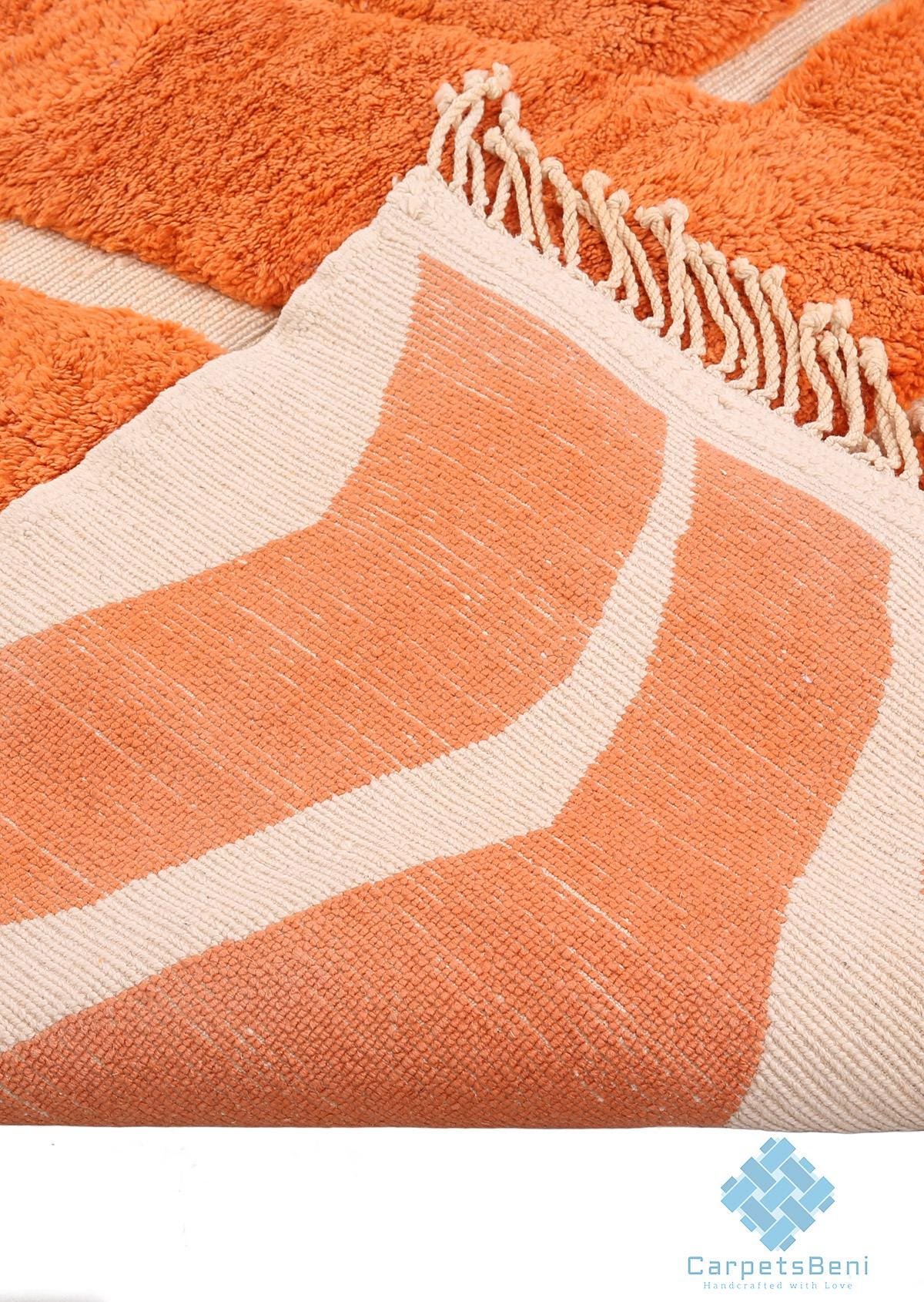 Custom handmade Beni Merirt Rug , Orange Moroccan Rug , Wool Rug Orange , Duty free