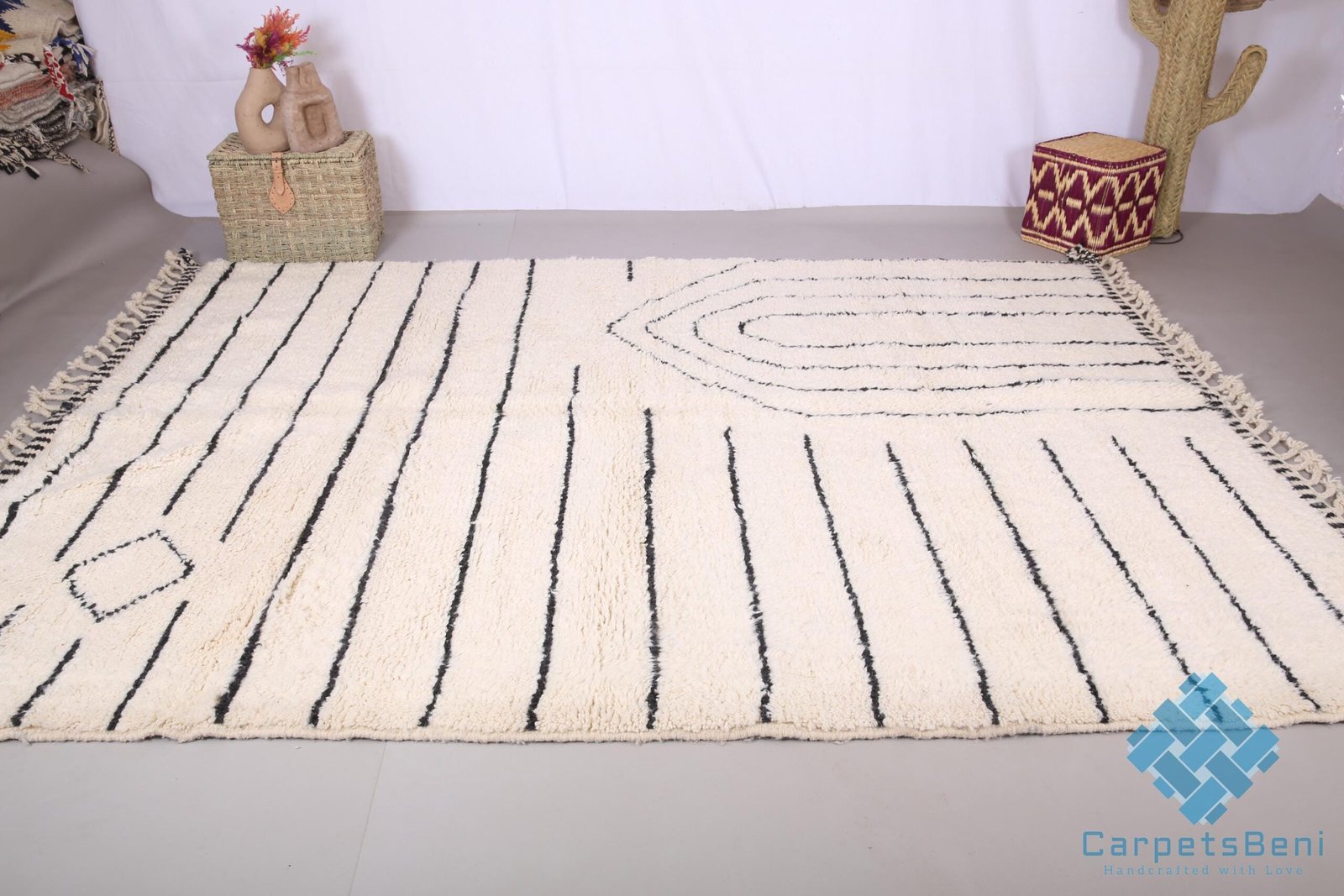 Custom handmade moroccan rug – beni ourain rug – 100% wool rug – handcrafted rug – beni rugs – bohemian rugs – striped berber carpet
