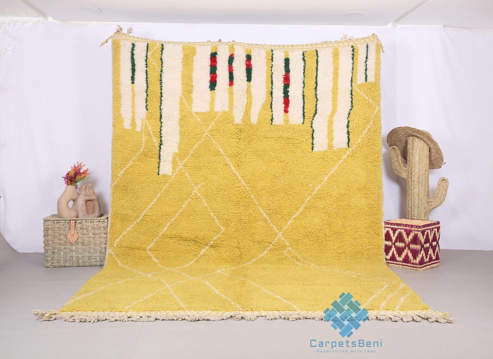 Custom moroccan rug – Moroccan rug – beni ourain rug – All wool rug – handcrafted rug – Gift home decor – Duty free – Yellow moroccan rug