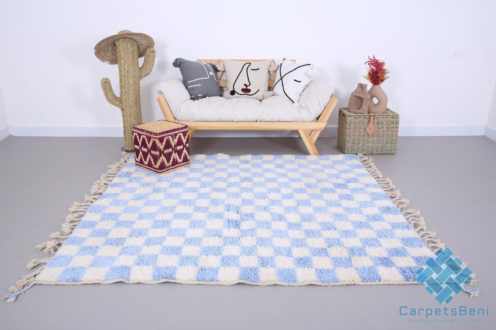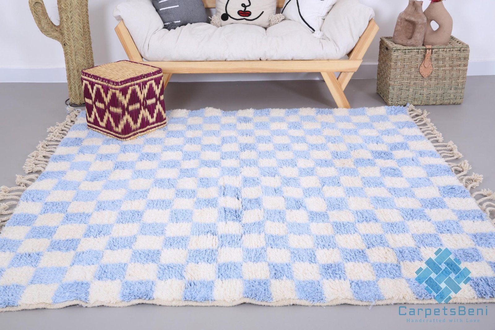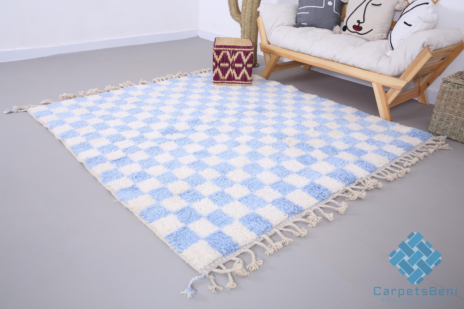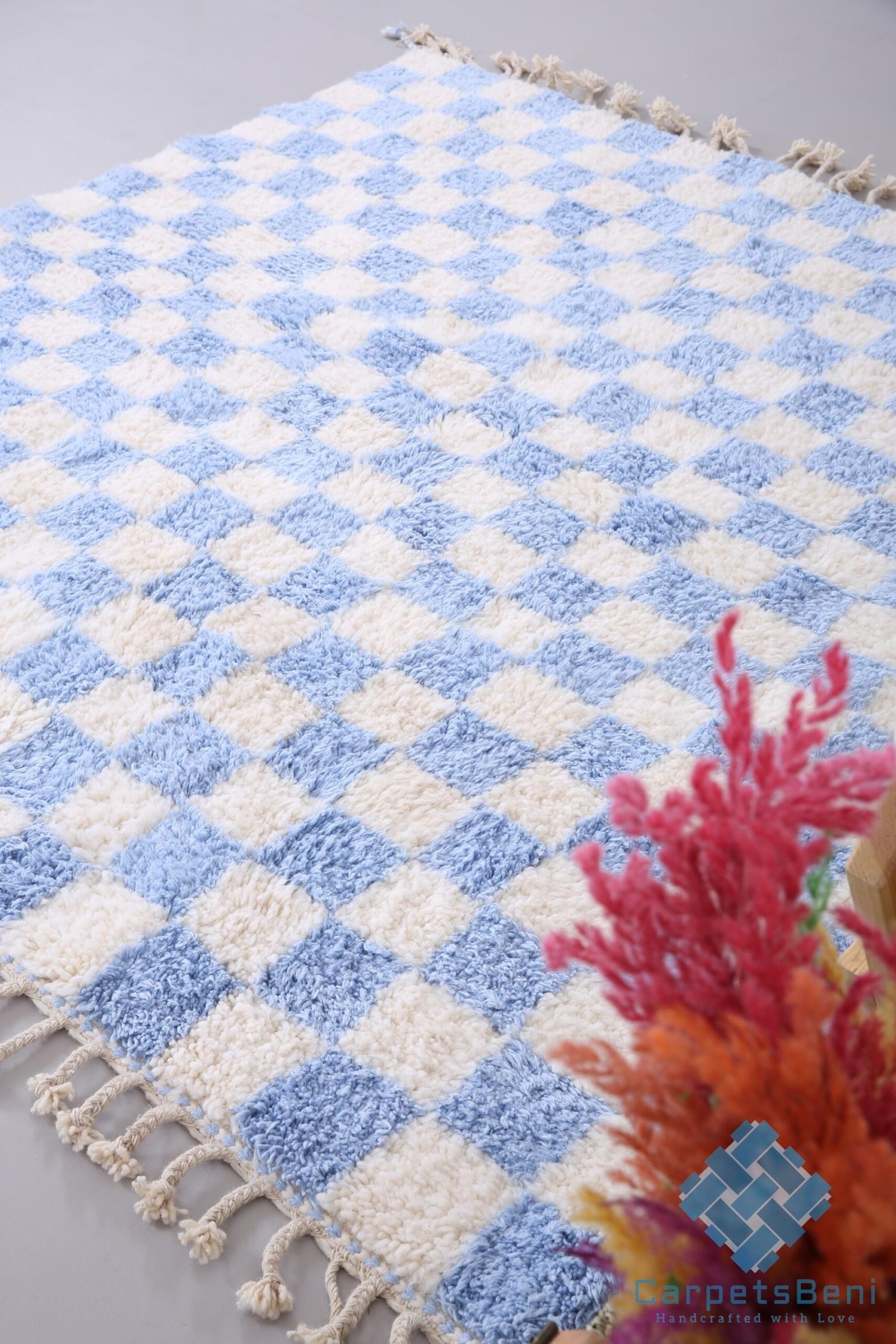 Custom moroccan rug – Moroccan rug – Beni ourain rug – Wool rug – Checkered rug – ice blue rug – chess rug – home decor – handmade rug