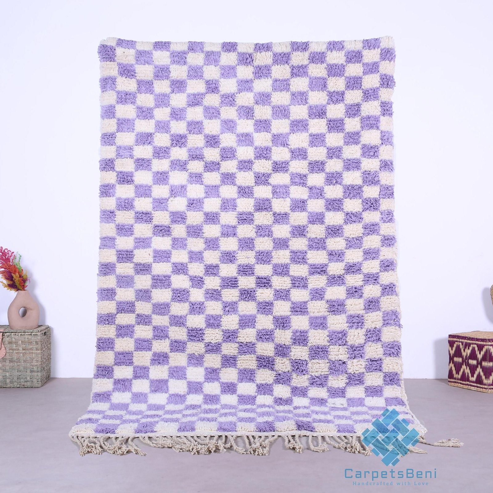Custom moroccan rug – Moroccan rug – wool rug – checkered rug – beni ourain rug – berber rug – contemporary rug – handmade rug – purple rug