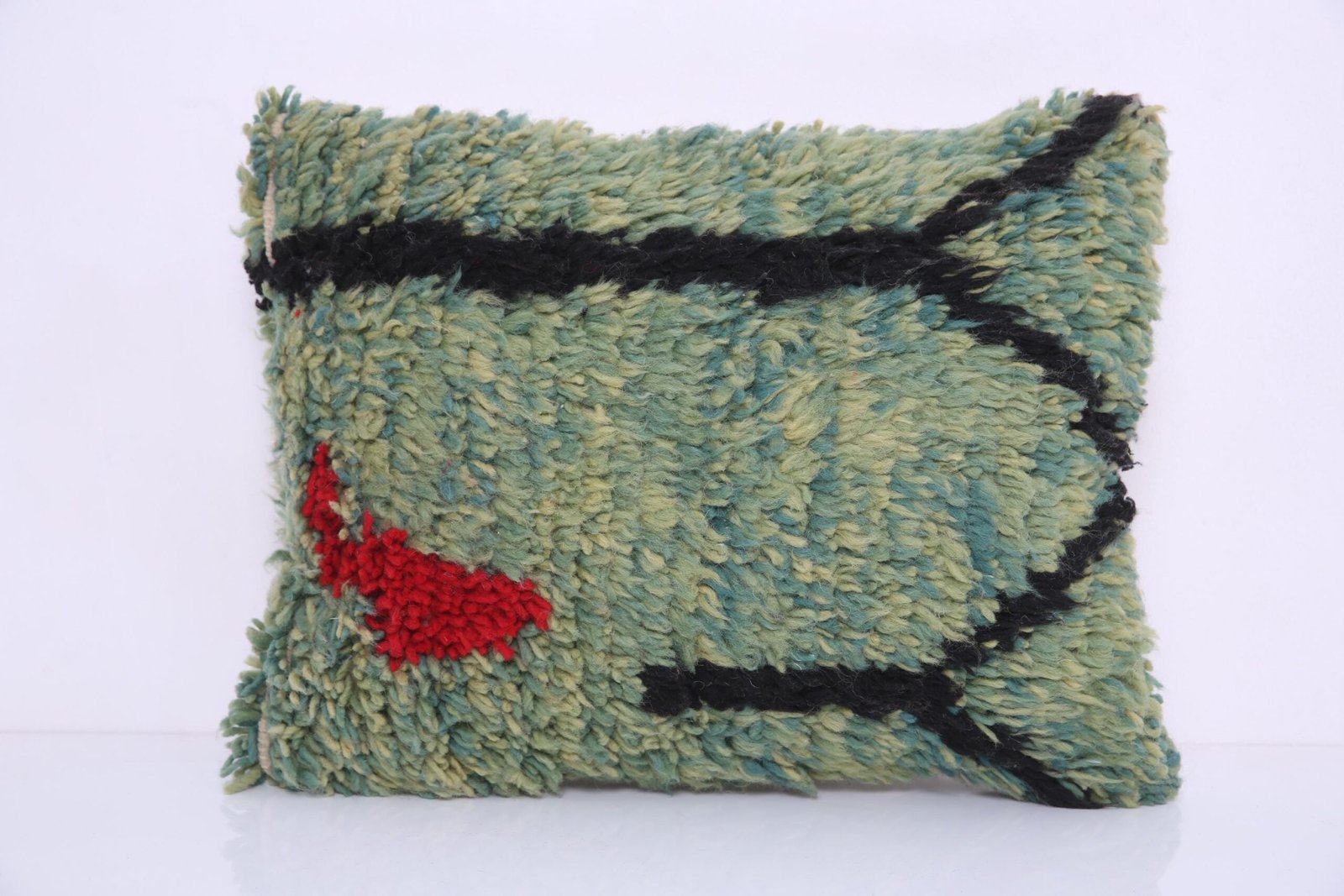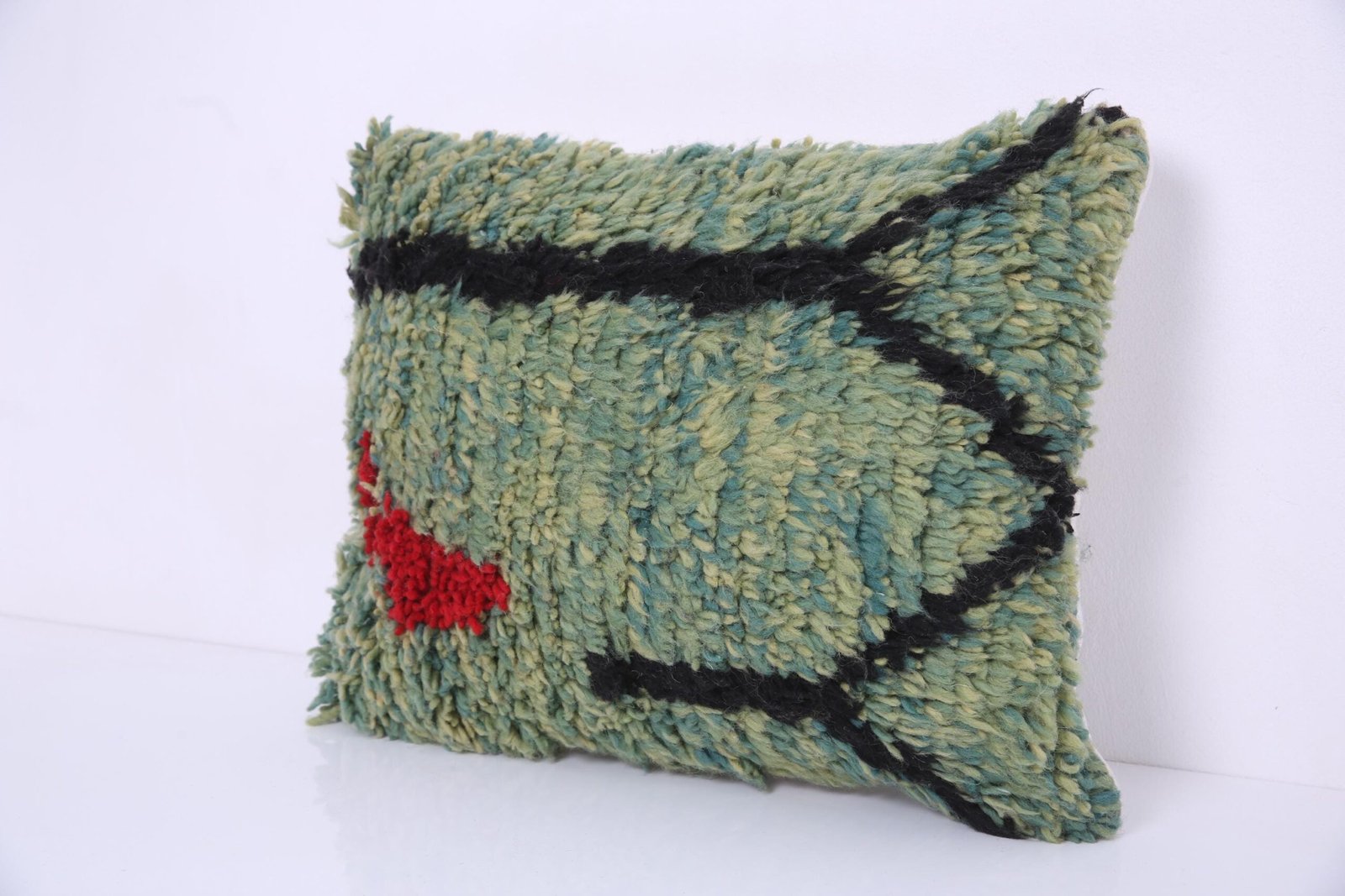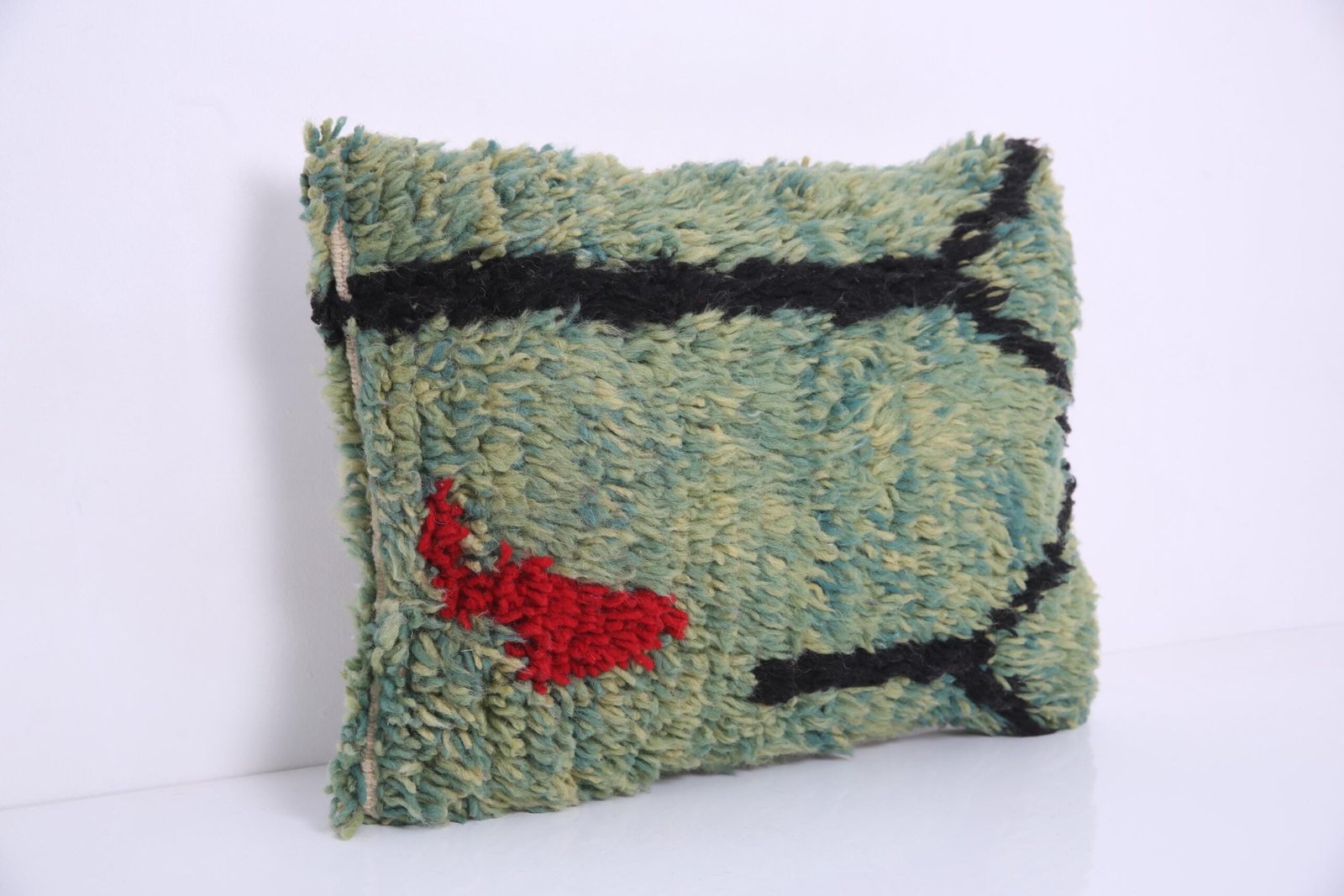 Green Moroccan Pillow 15.7”x 20″ – Kilim Pillowcase – Handmade pillow cover – wool pillowcase – Berber Pillowcase – vintage pillowcase