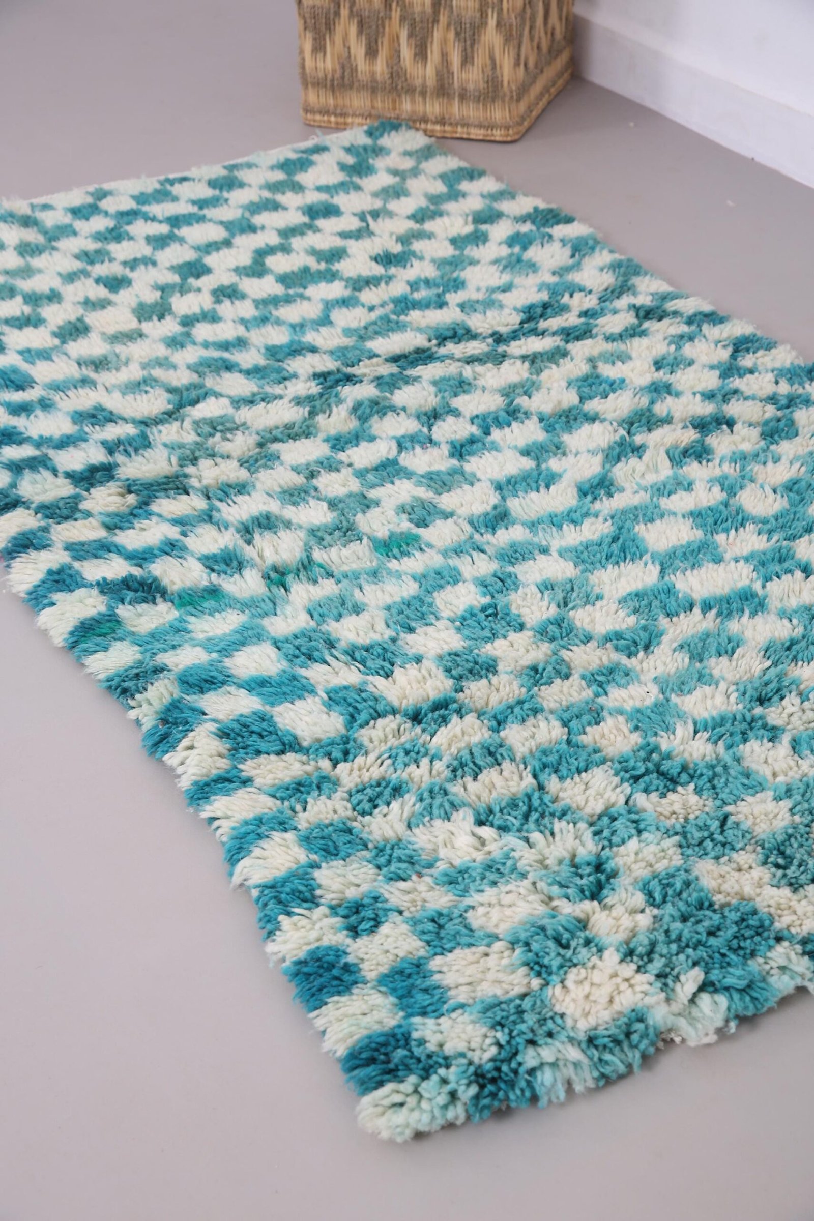 Handmade Moroccan rug – Berber rug – 100% wool rug – authentic Moroccan rug – custom wool rug – Moroccan Beni Ourain – Azilal rug – Boucherouite rug – vintage Moroccan rug – wool area rug – boho decor – Moroccan decor – luxury rug – Moroccan home decor – boho chic decor – vintage moroccan rug – handmade berber rug – beni ourain rug – rugs ready to ship – christmas gifts – christmas gift rugs – cyan moroccan rug – 3 x 6 ft
