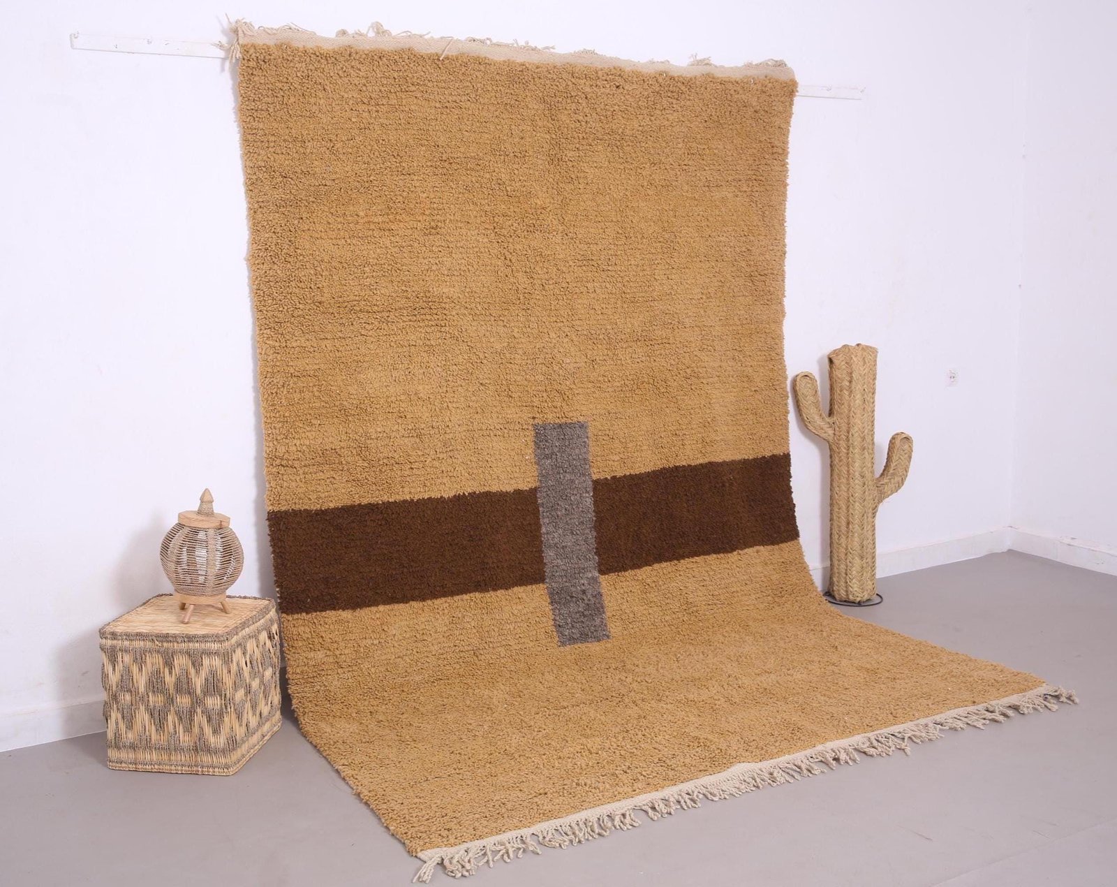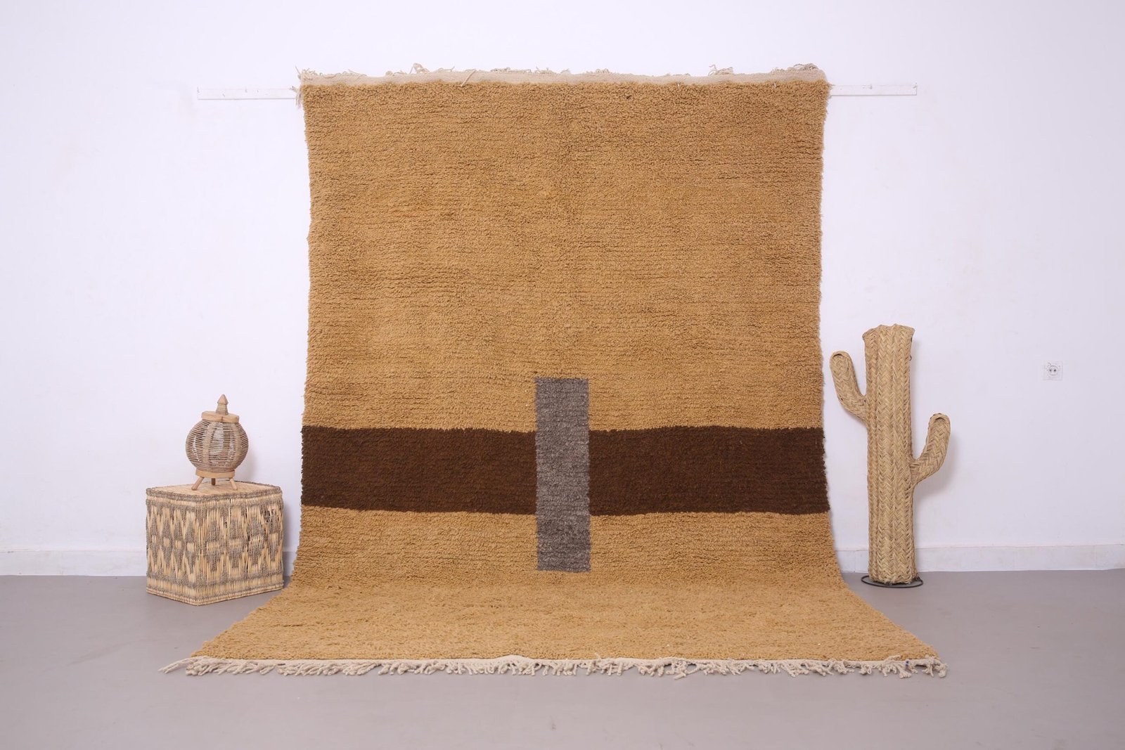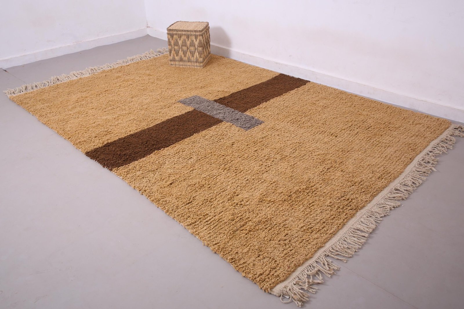 Handmade Moroccan Rug 7 x 10.2 FT – Beige, Brown & Gray Modern Beni Ourain Design – Minimalist Berber Wool Carpet – Custom Sizes Available