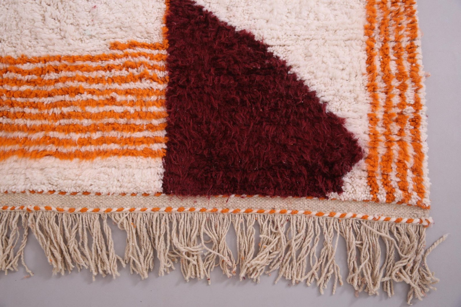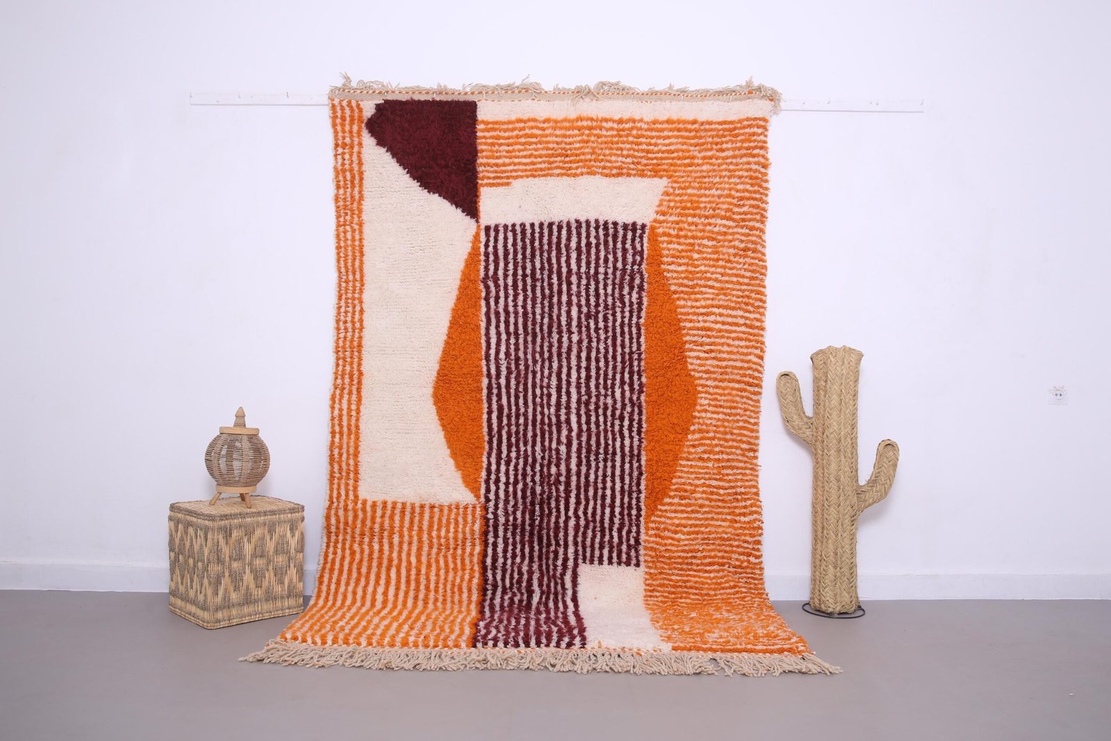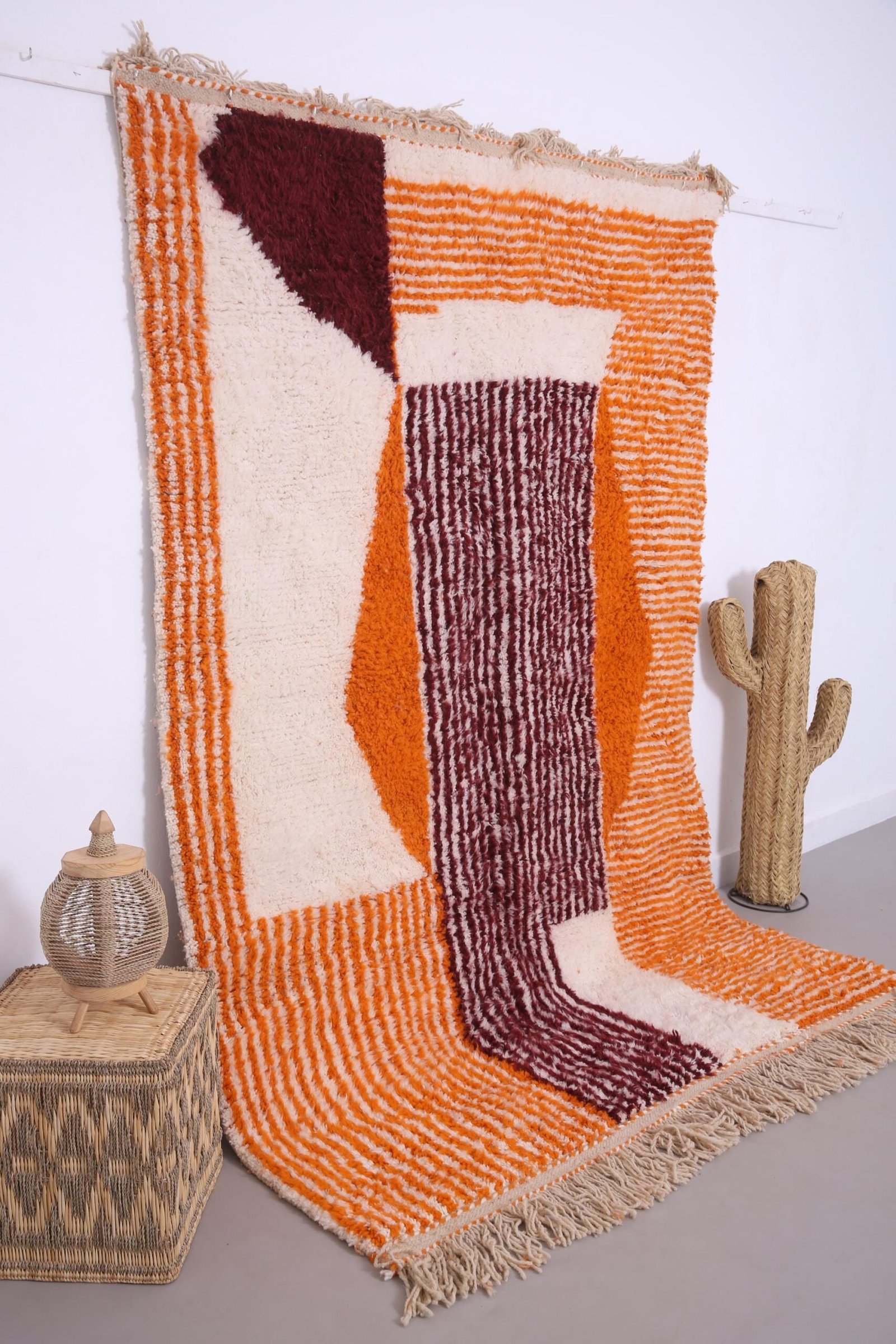 Modern Abstract Moroccan Rug 5.8×8.5 ft – Handmade Wool Rug – Beni Ourain Style Moroccan Rug – Orange and Burgundy Geometric Rug – Duty Free