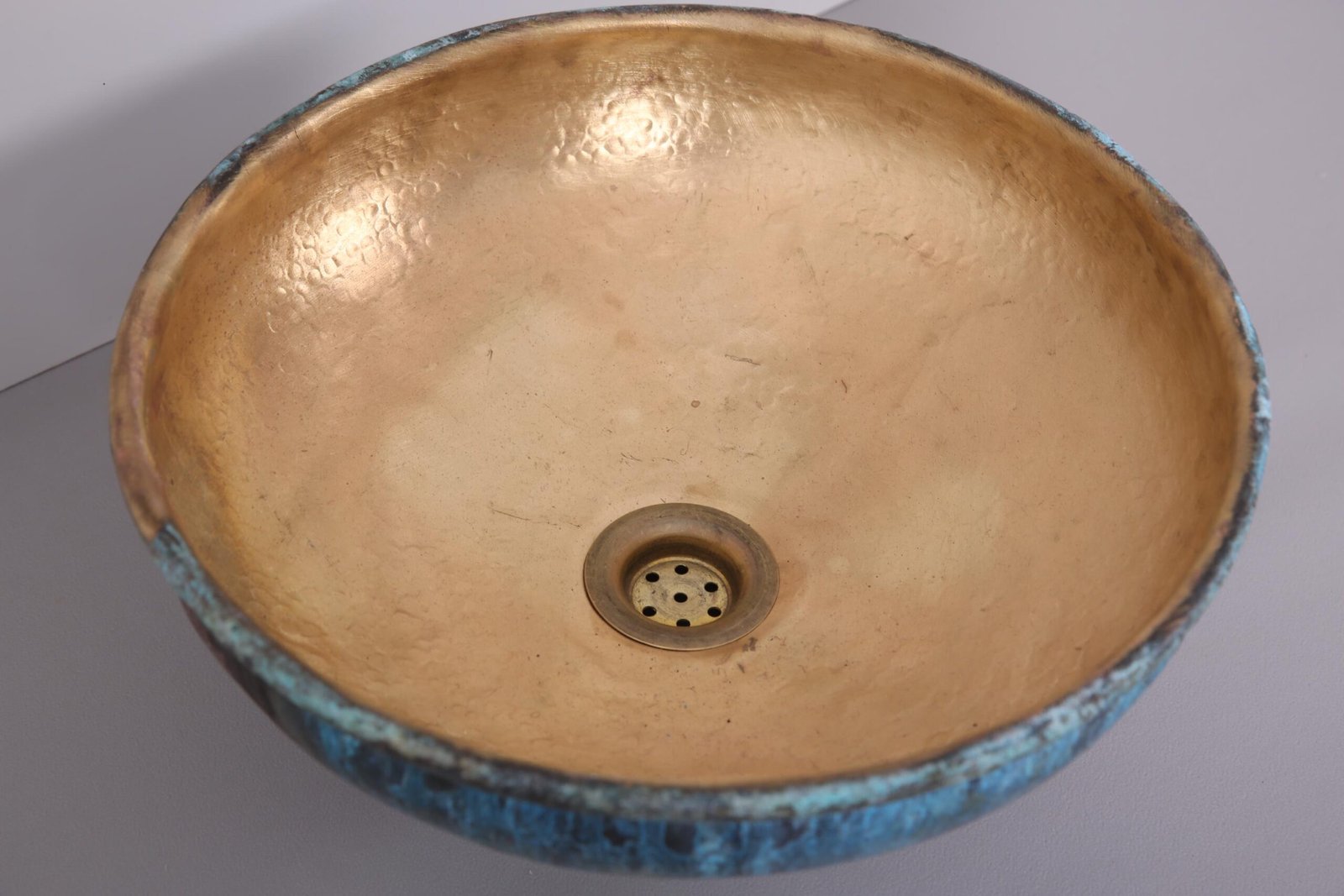 Handmade Moroccan Oxidized Brass Sink – Aged Blue Patina Vessel Sink – Artisan Copper Interior Basin – Rustic Bathroom Vanity Bowl – Unique Moroccan Bathroom Decor