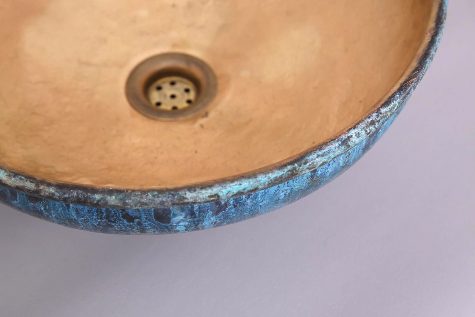 Material: Solid brass with natural oxidized patina + hammered copper interior