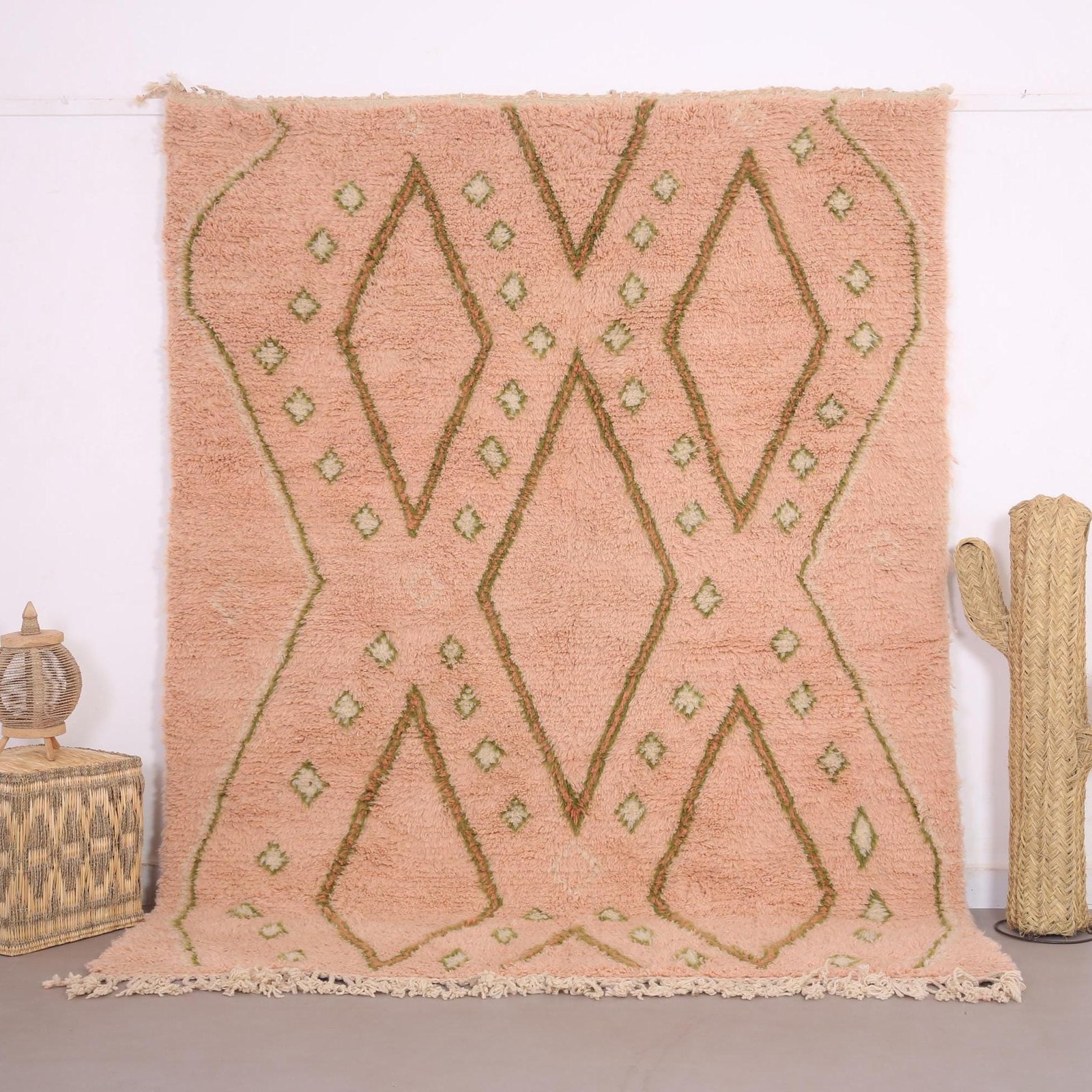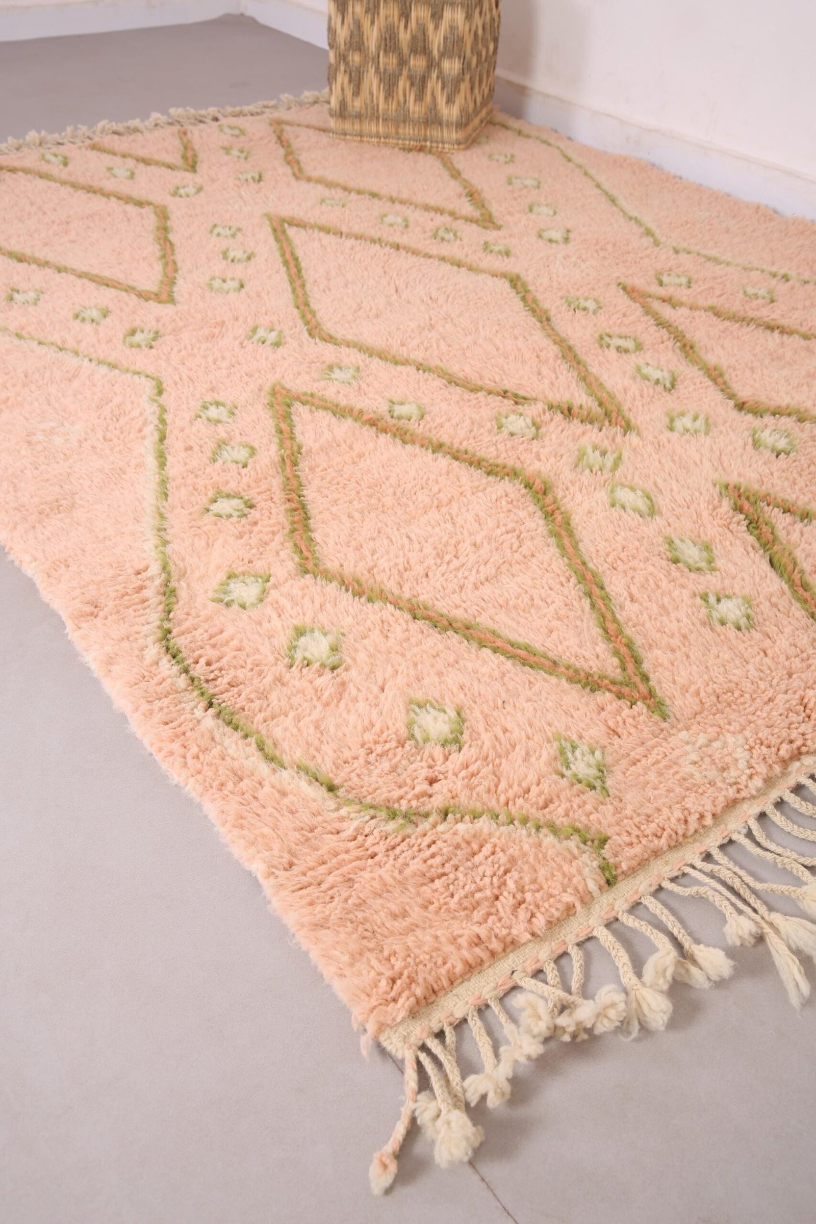 Moroccan Rug 6.3 x 8.4 ft – peach Moroccan rug – berber wool rug – Vintage Moroccan Rug – Beni Ourain Rug – Living Room Rug – handmade rug