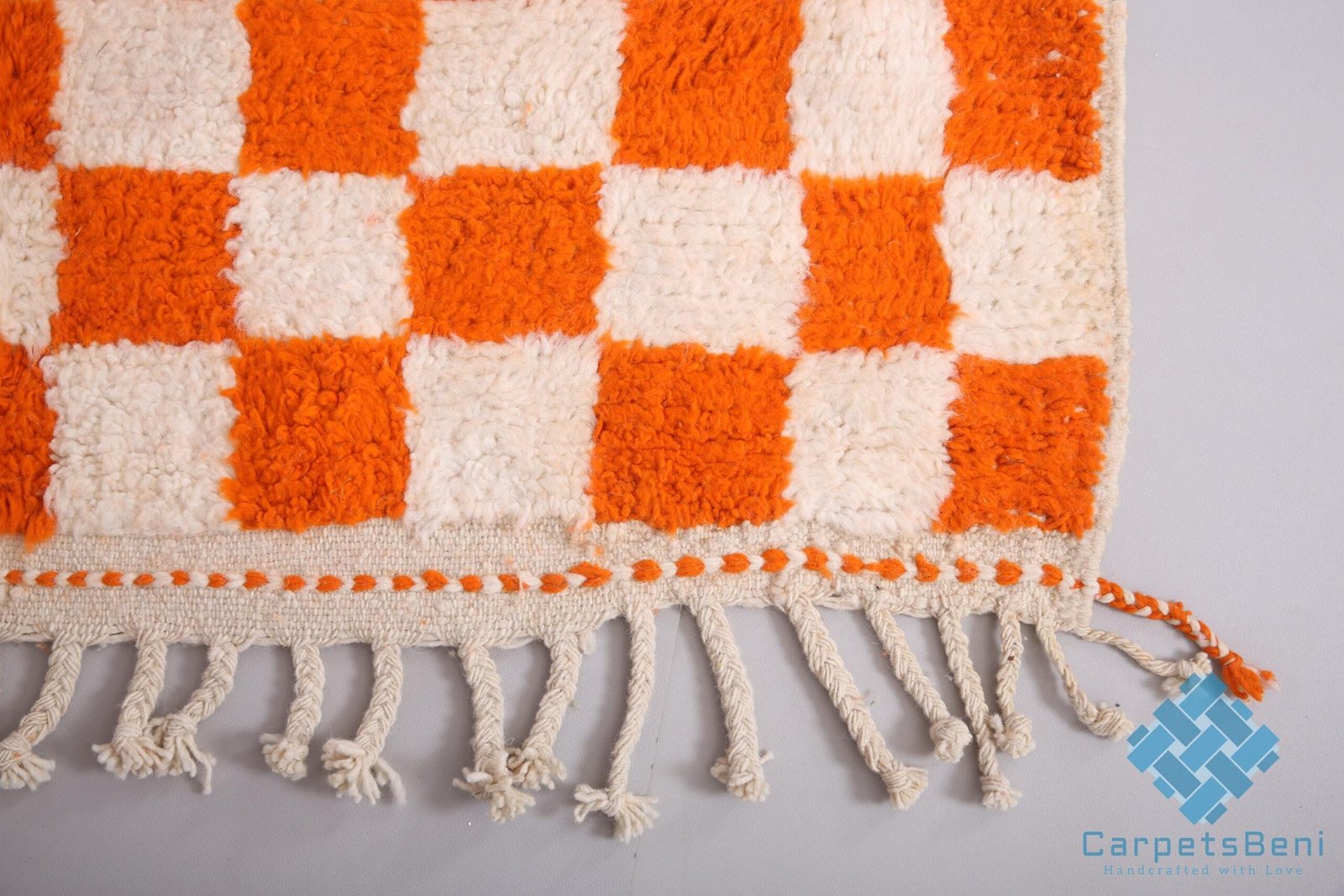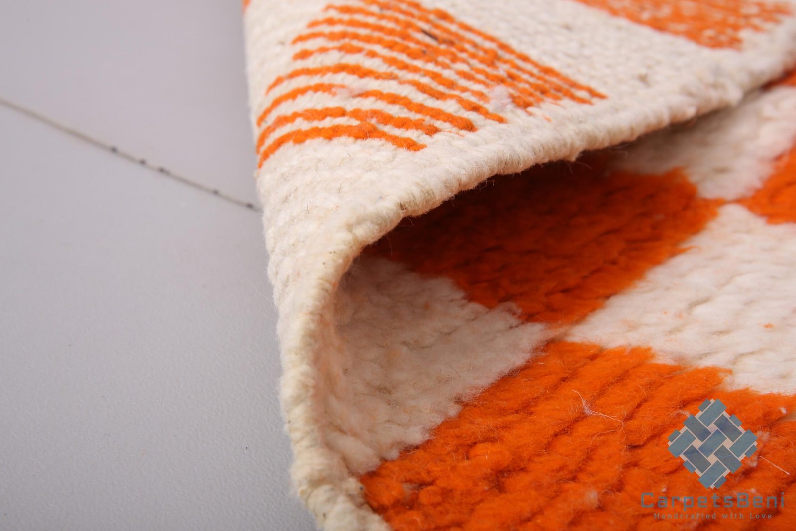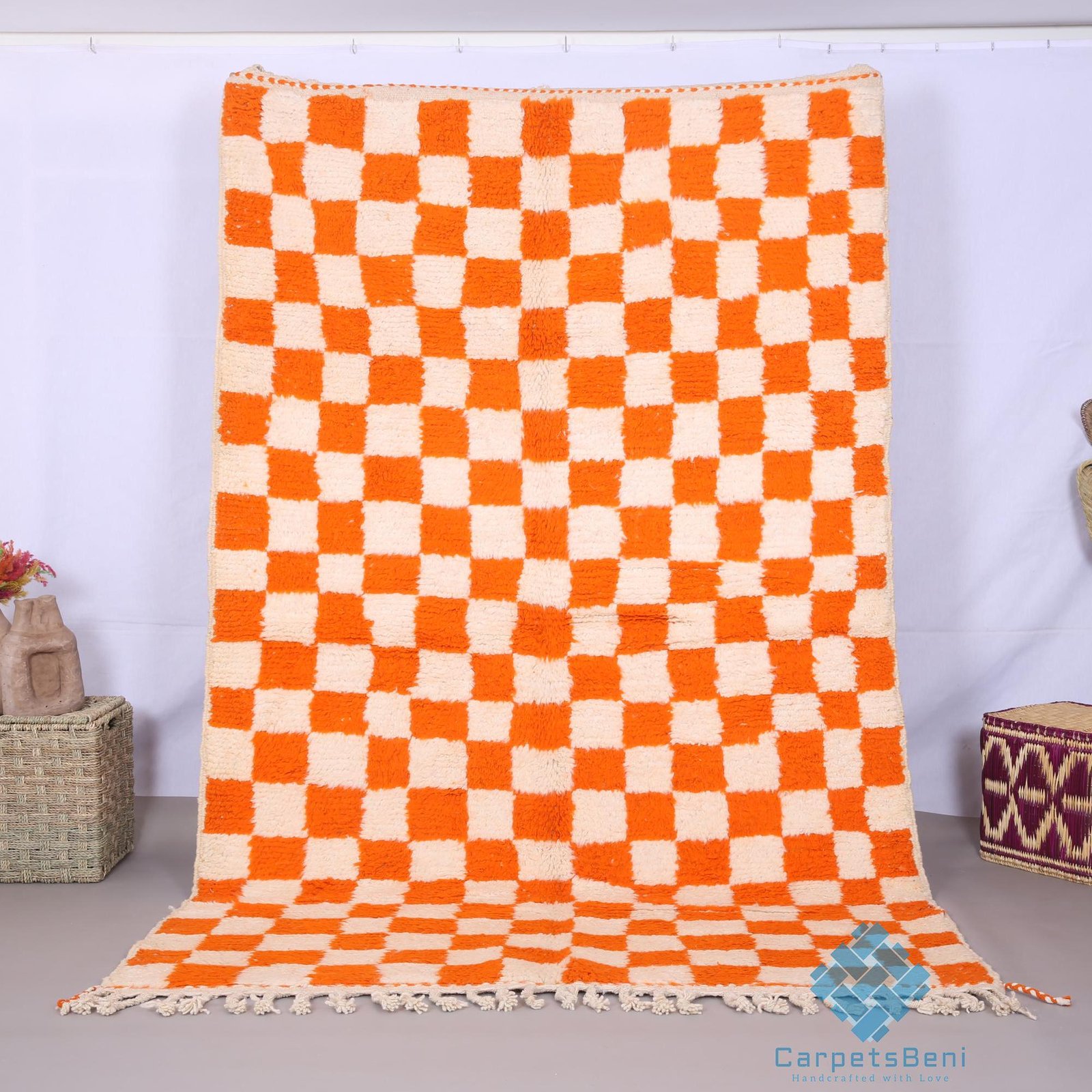 Orange Custom moroccan rug – beni ourain rug – 100% wool rug – berber checkered rug – beni rugs – bohemian rug – contemporary berber carpet
