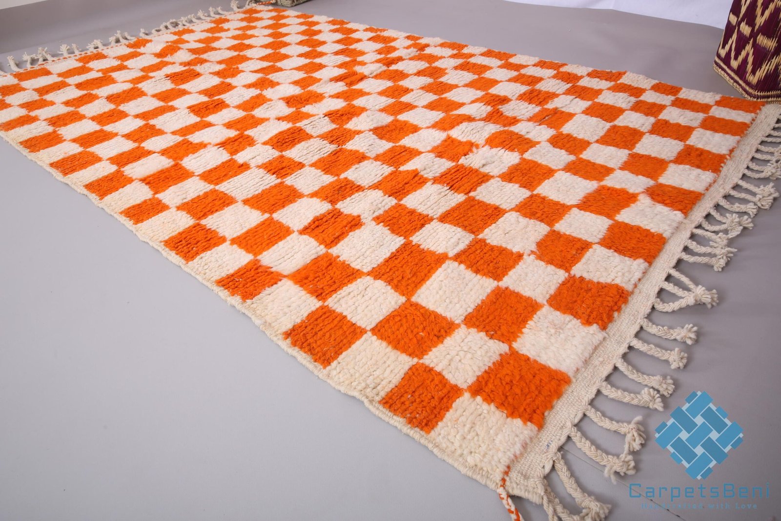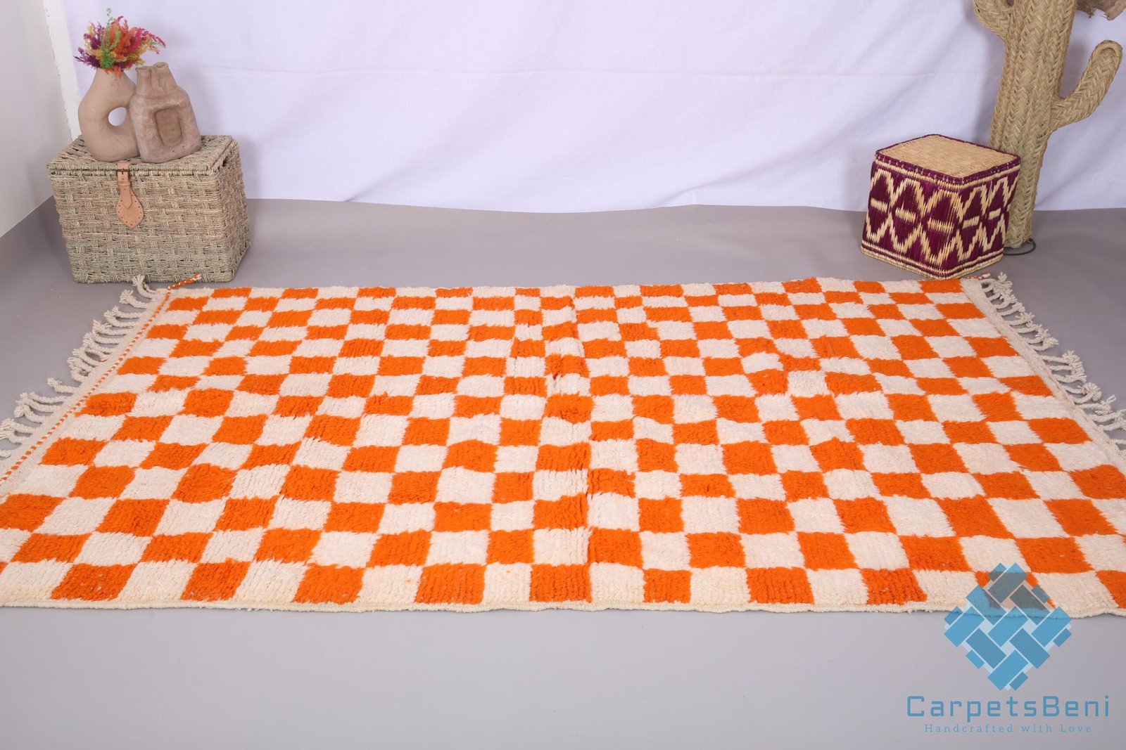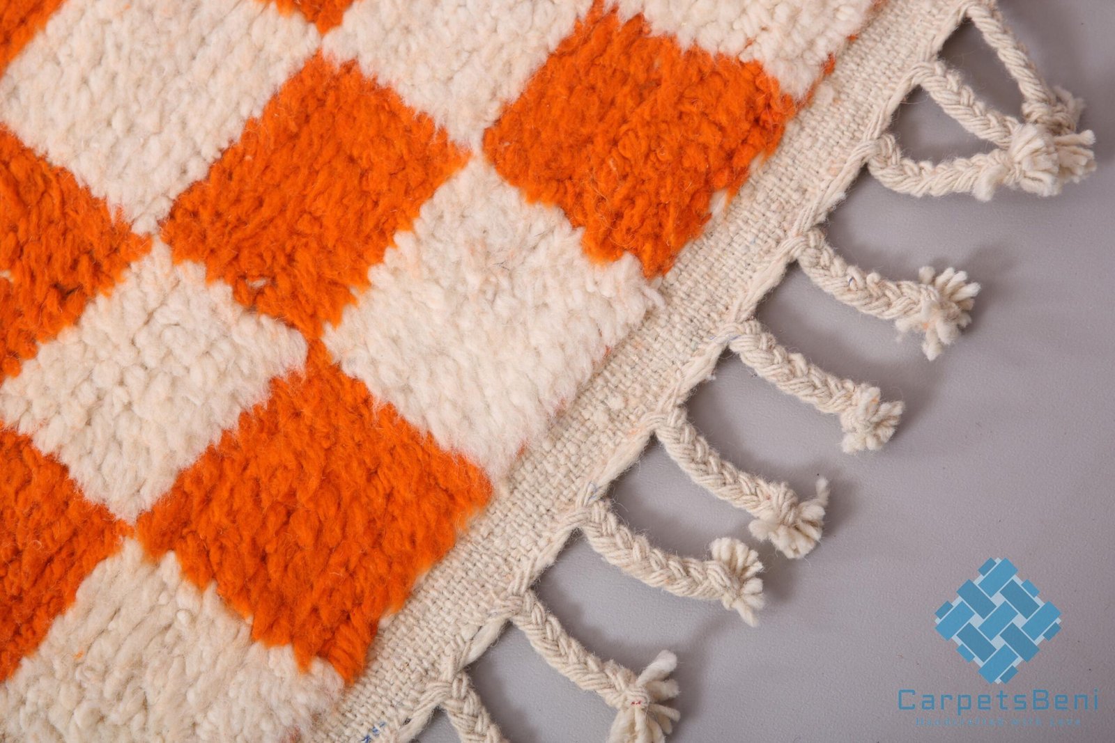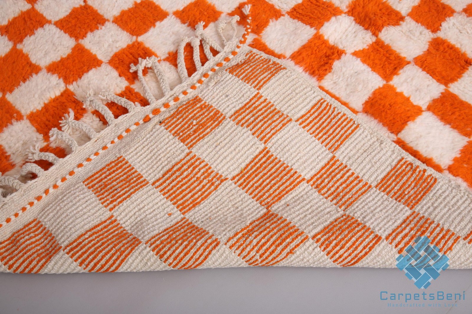 Orange Custom moroccan rug – beni ourain rug – 100% wool rug – berber checkered rug – beni rugs – bohemian rug – contemporary berber carpet