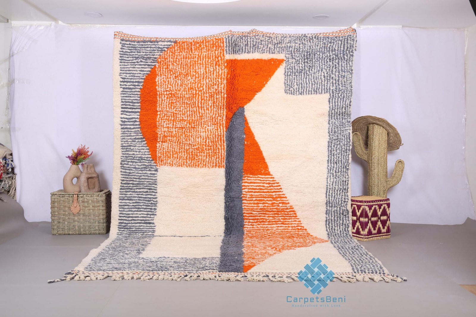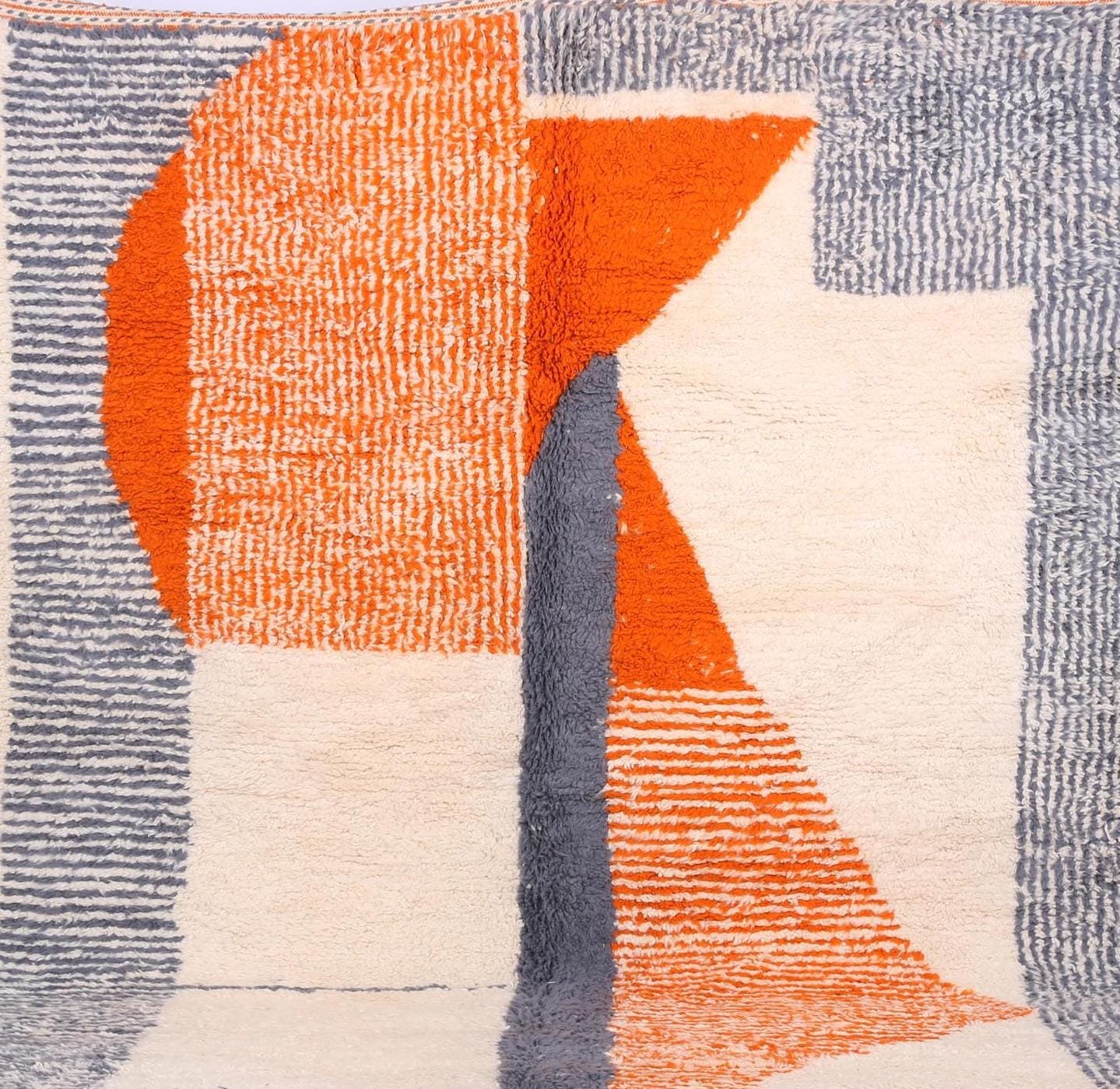 Orange custom moroccan rug – Moroccan rug – Beni ourain rug – wool rug – handcrafted rug – Living room rug – contemporary berber carpet