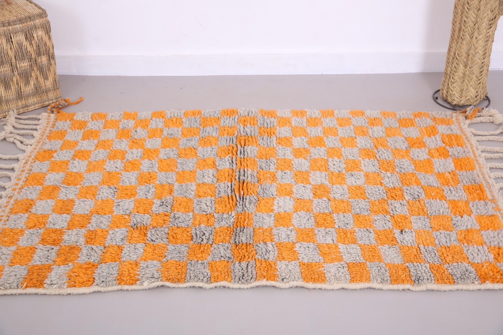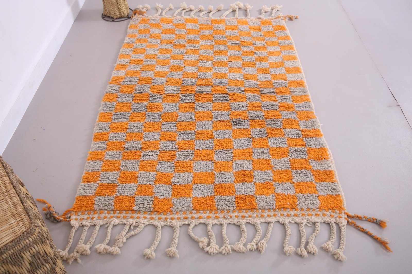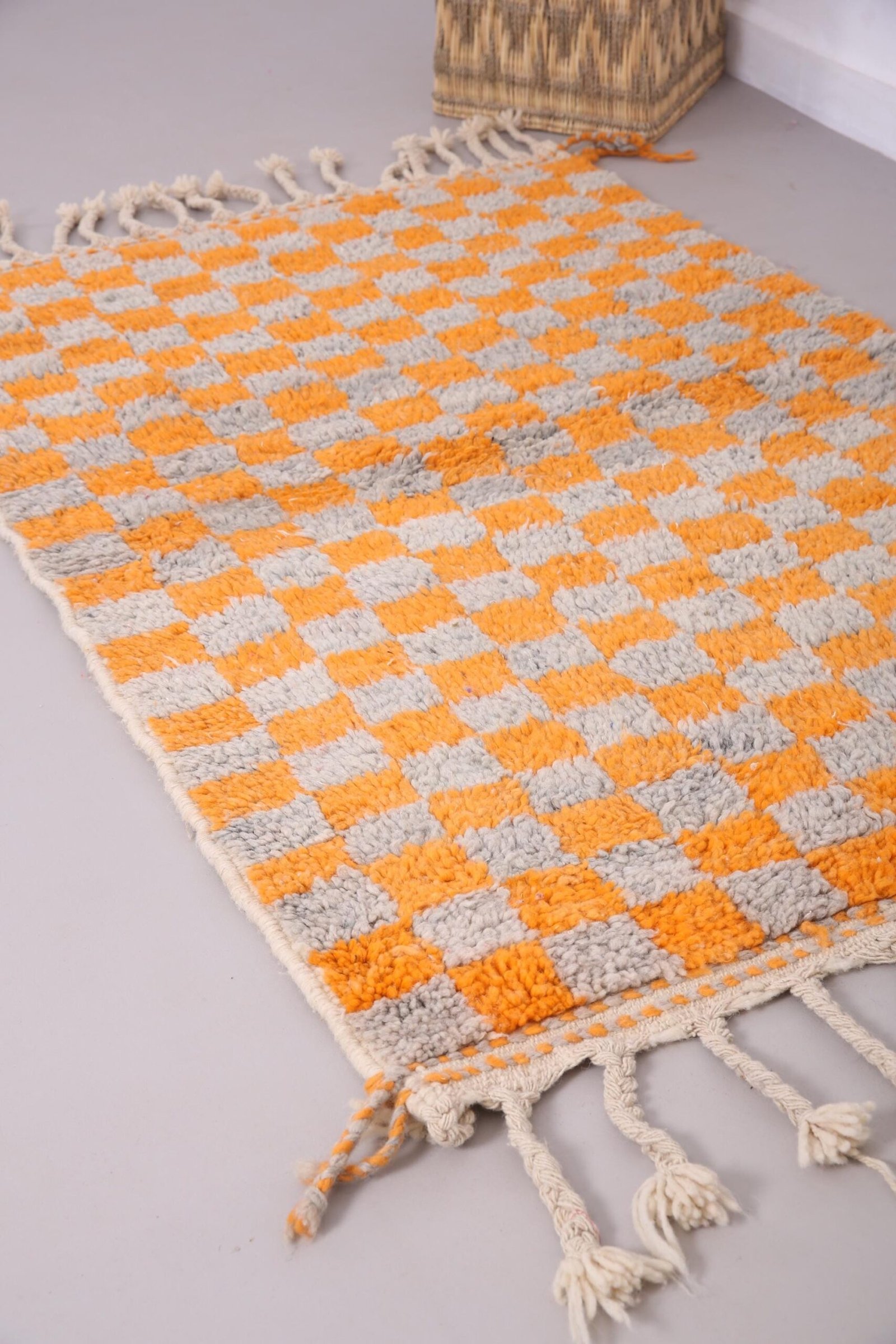 Orange Wool Beni Ourain Rug 3.7 x 5.5 ft, Moroccan rug