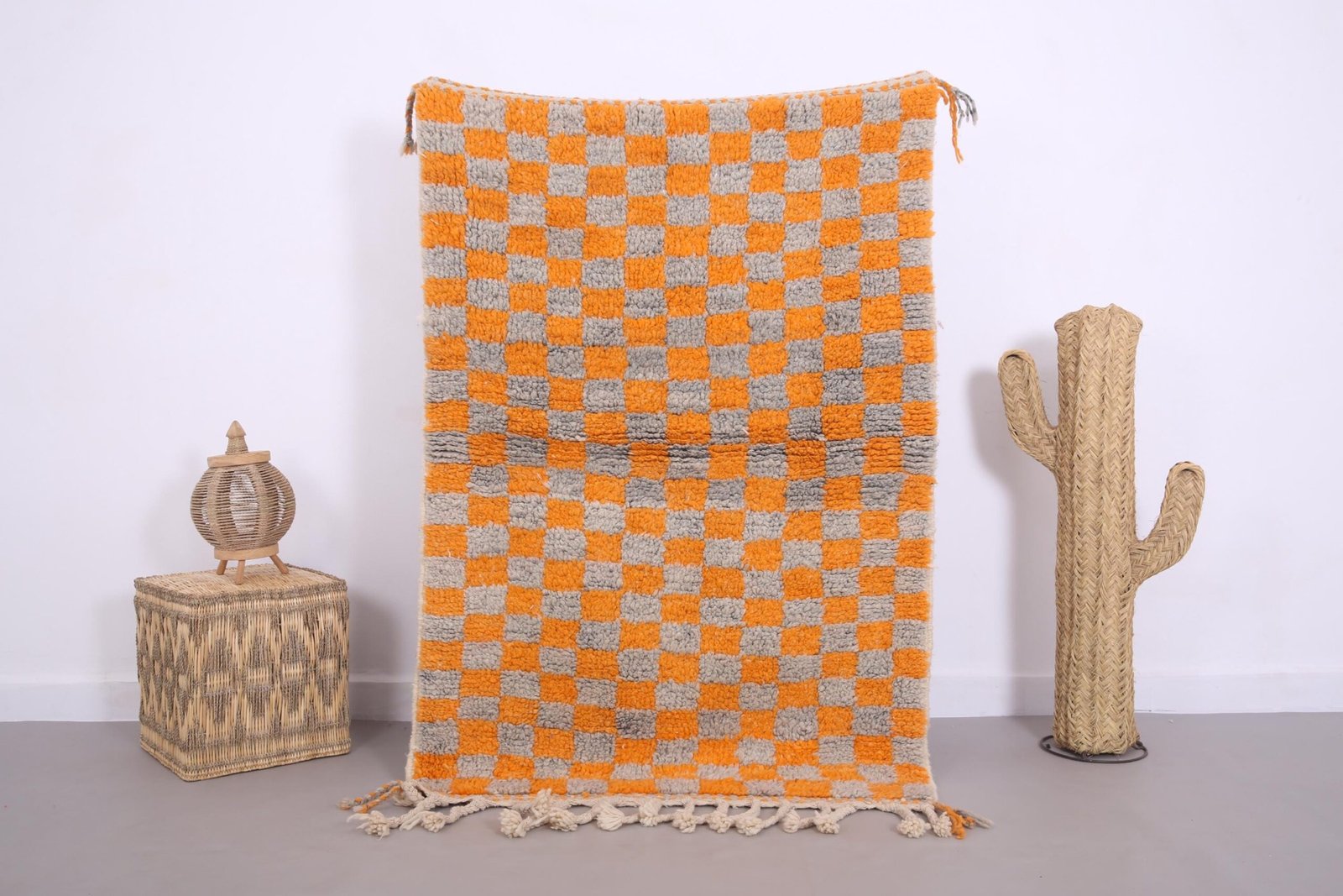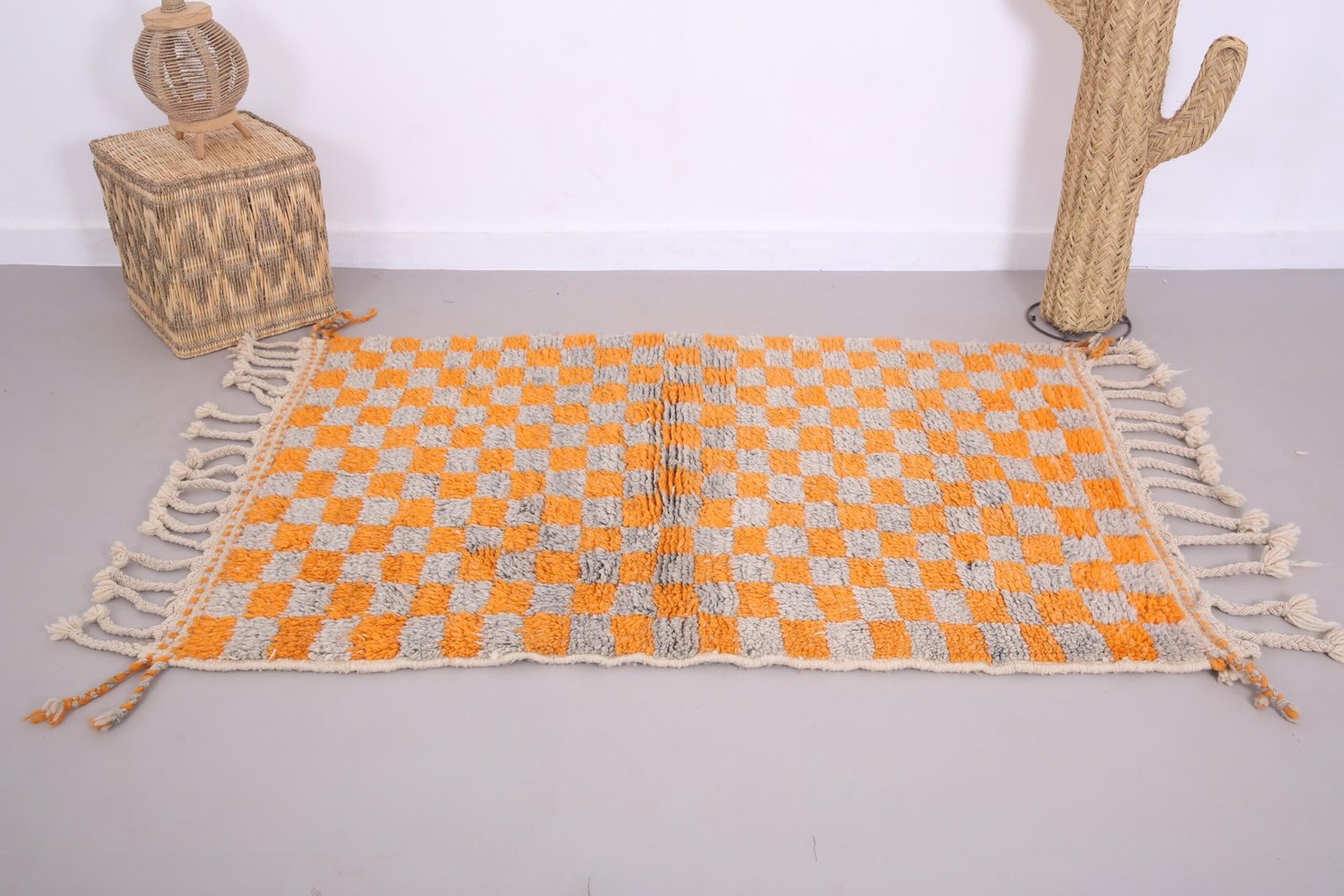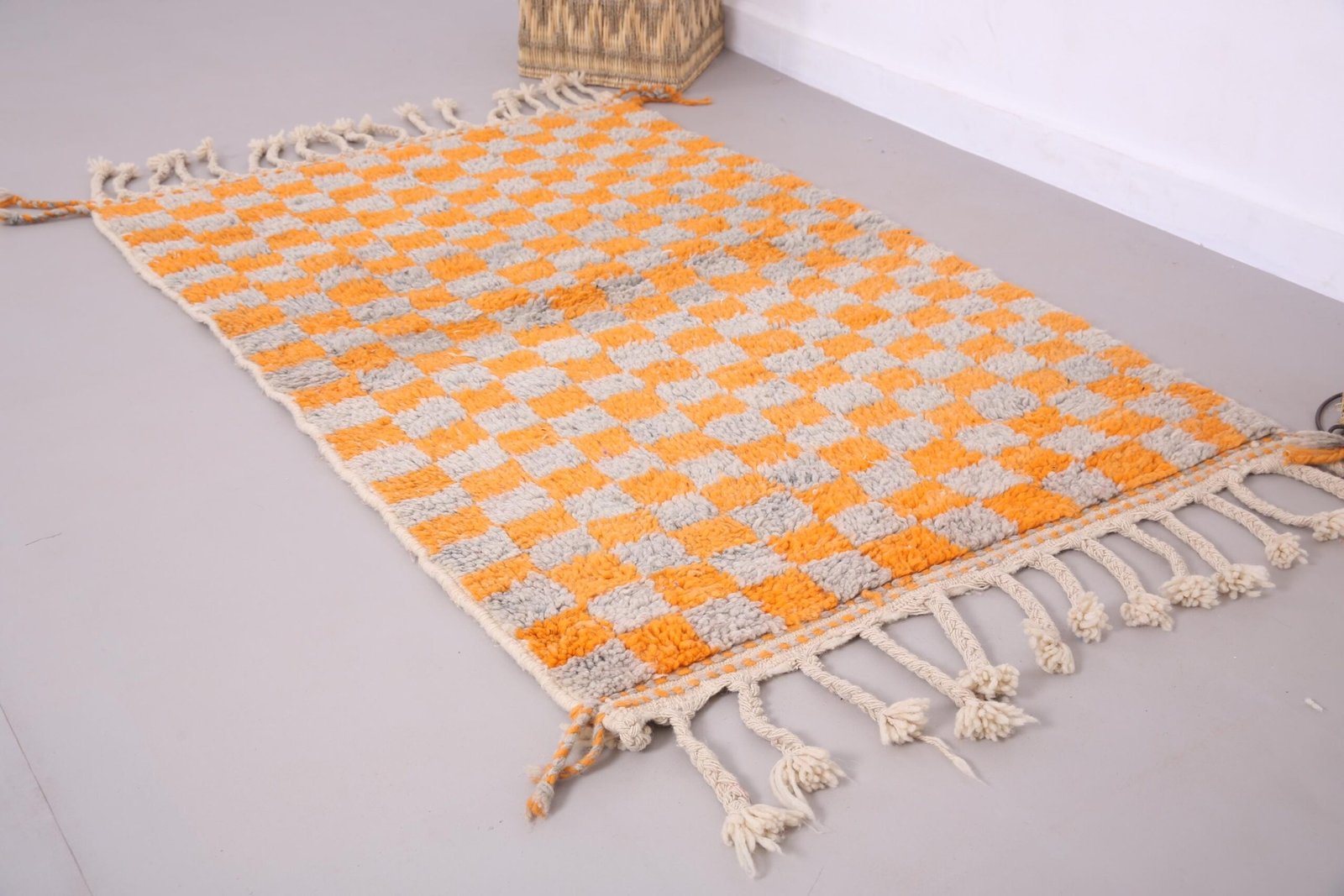 Orange Wool Beni Ourain Rug 3.7 x 5.5 ft, Moroccan rug