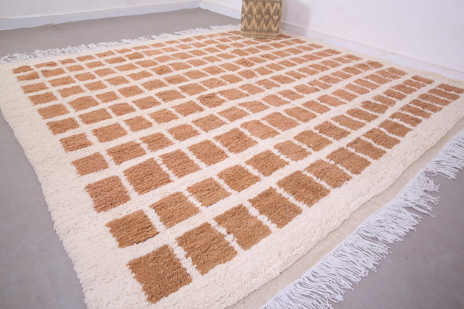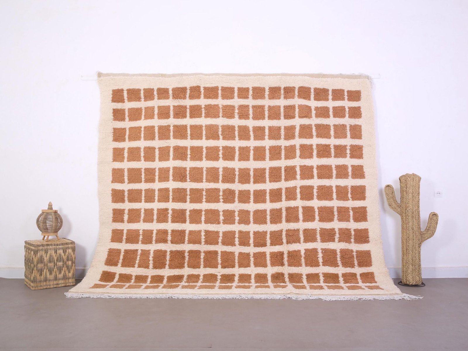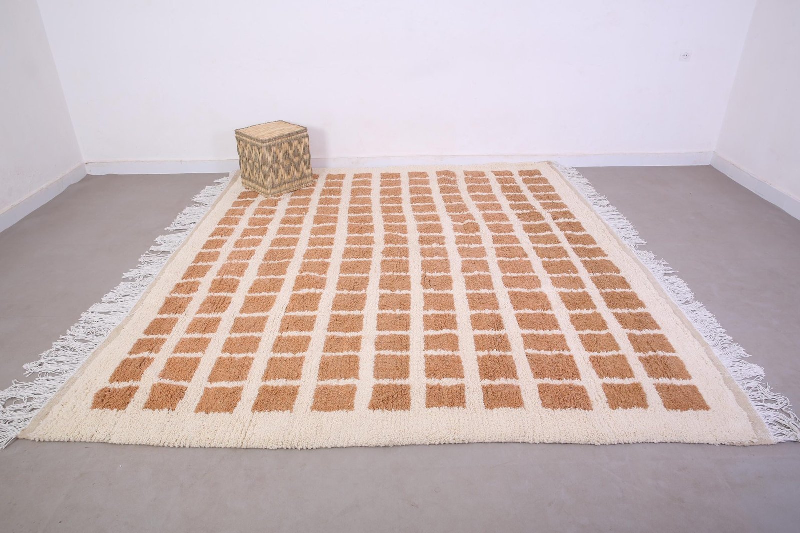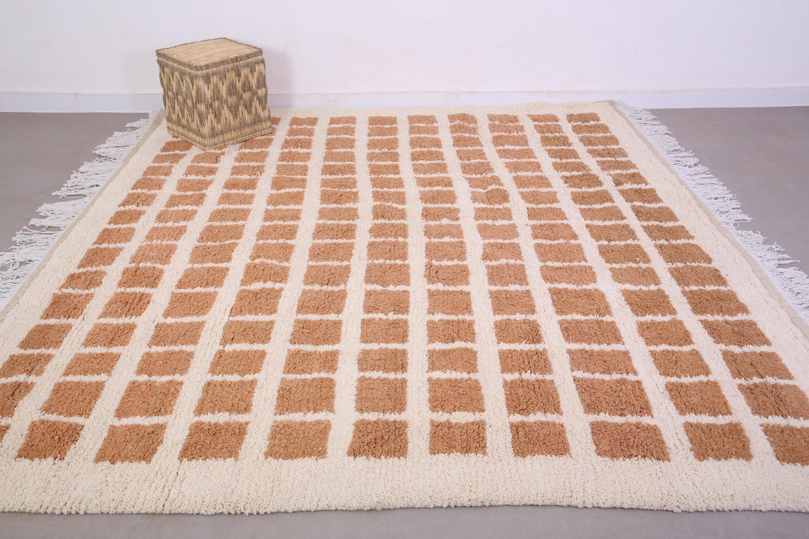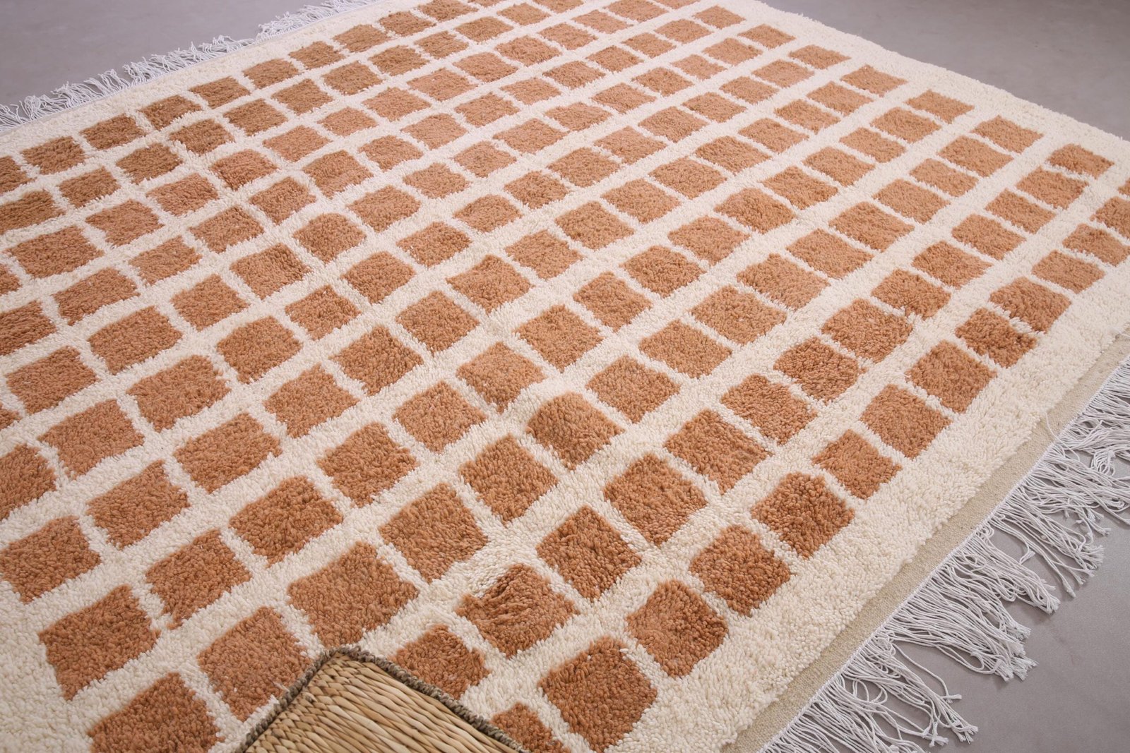 Peach Beni Ourain Rug 9.1 ft x 8.1 ft – moroccan rug – bohemian rug – contemporary berber carpet – berber rug – checkered rug – peach rug