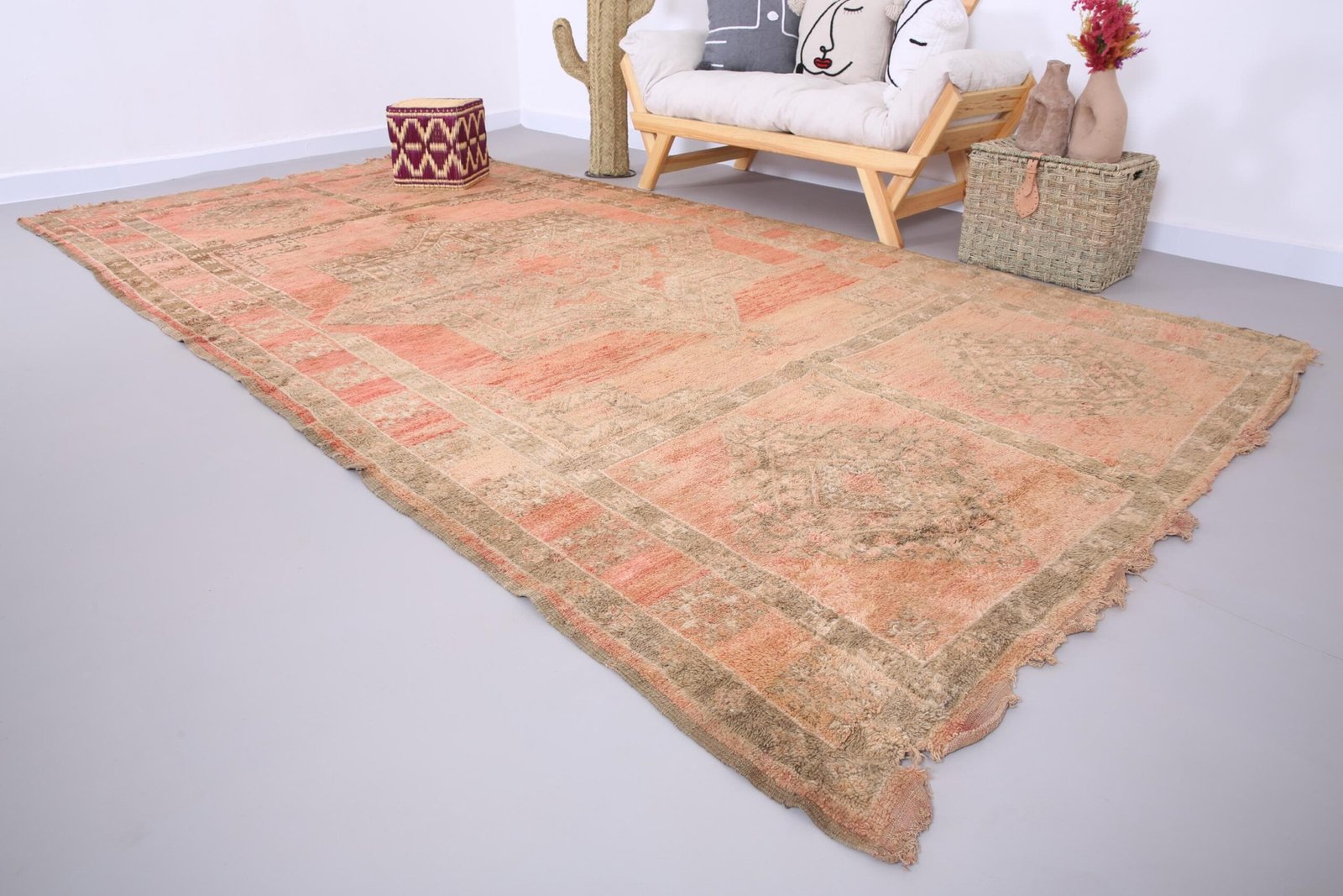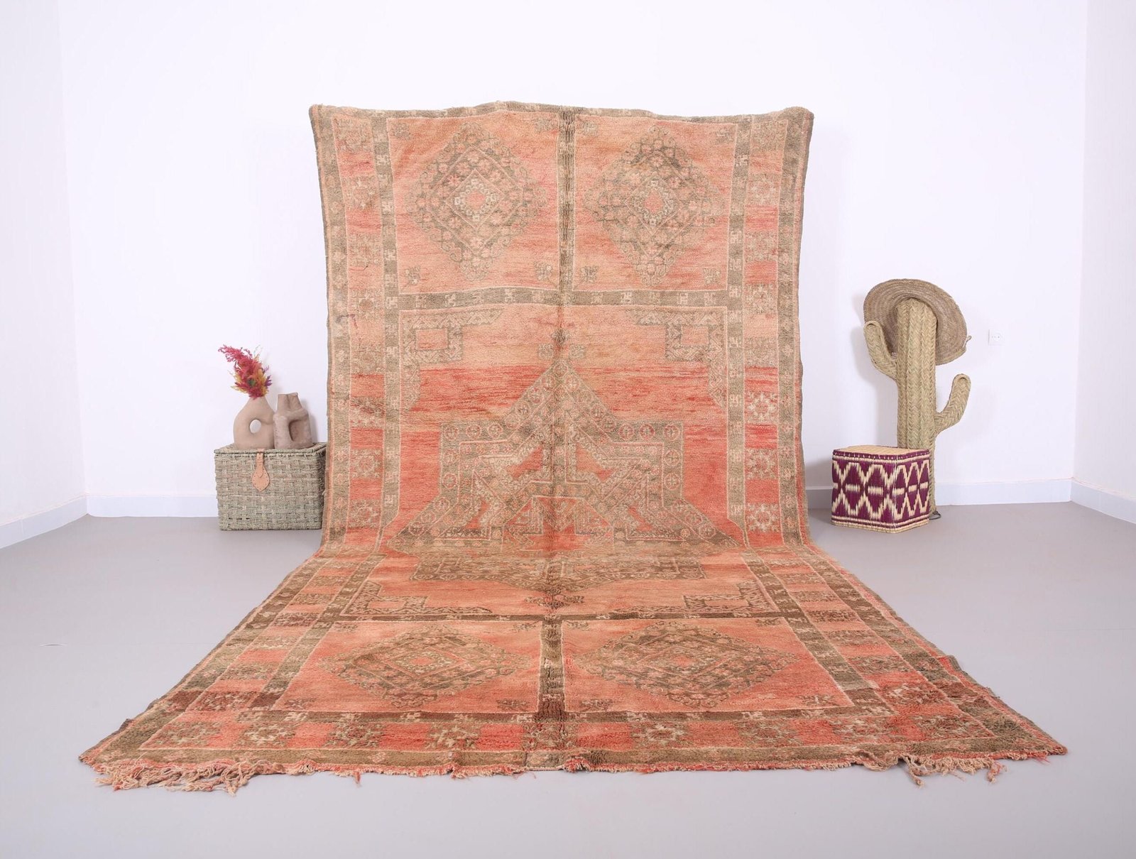 Peach Moroccan Boujaad Rug 6.7 x 13 FT – Handmade Berber Rug – Bohemian rug – Authentic Moroccan Rug – Moroccan rug – Vintage Moroccan Rug