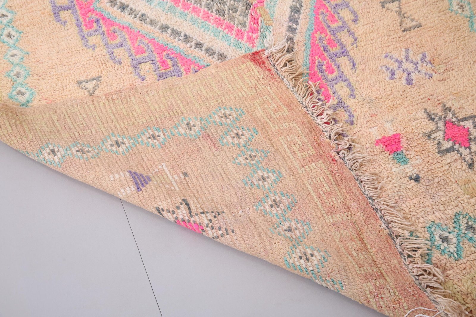 Peach Vintage Boujaad Rug 5.2×12 FT – Handmade Wool Berber Rug – Boho Chic Tribal Area Rug – Authentic Moroccan Rug – Duty Free