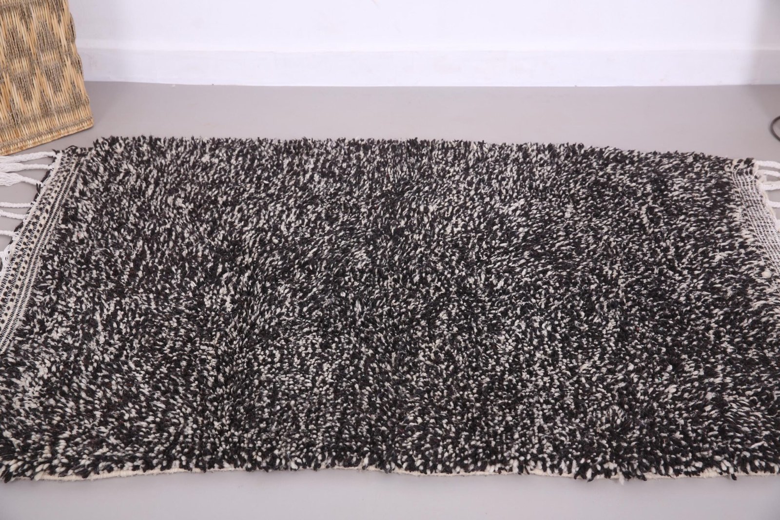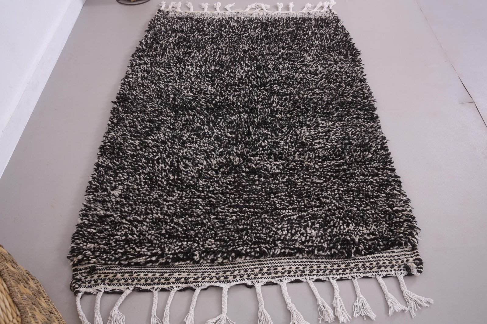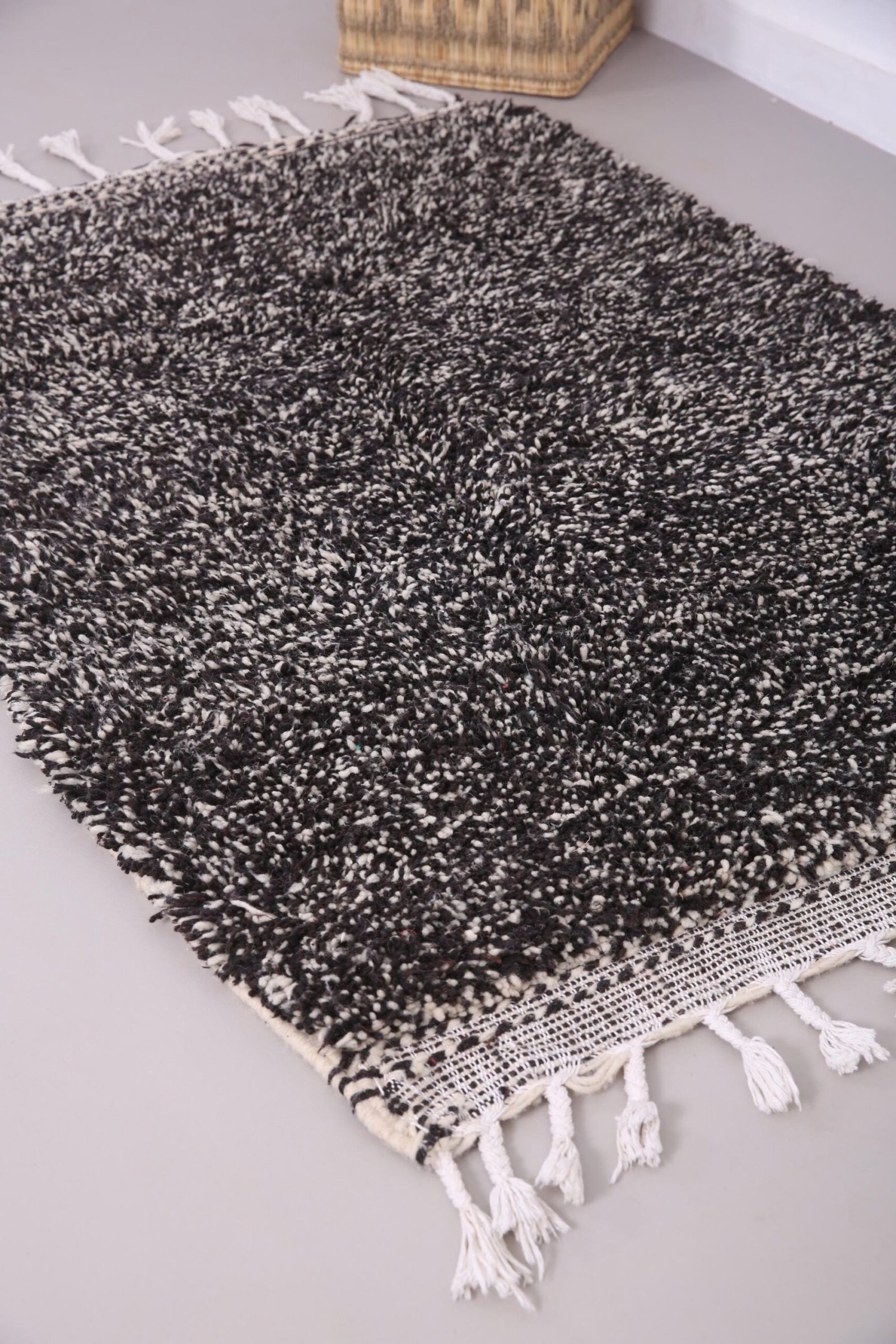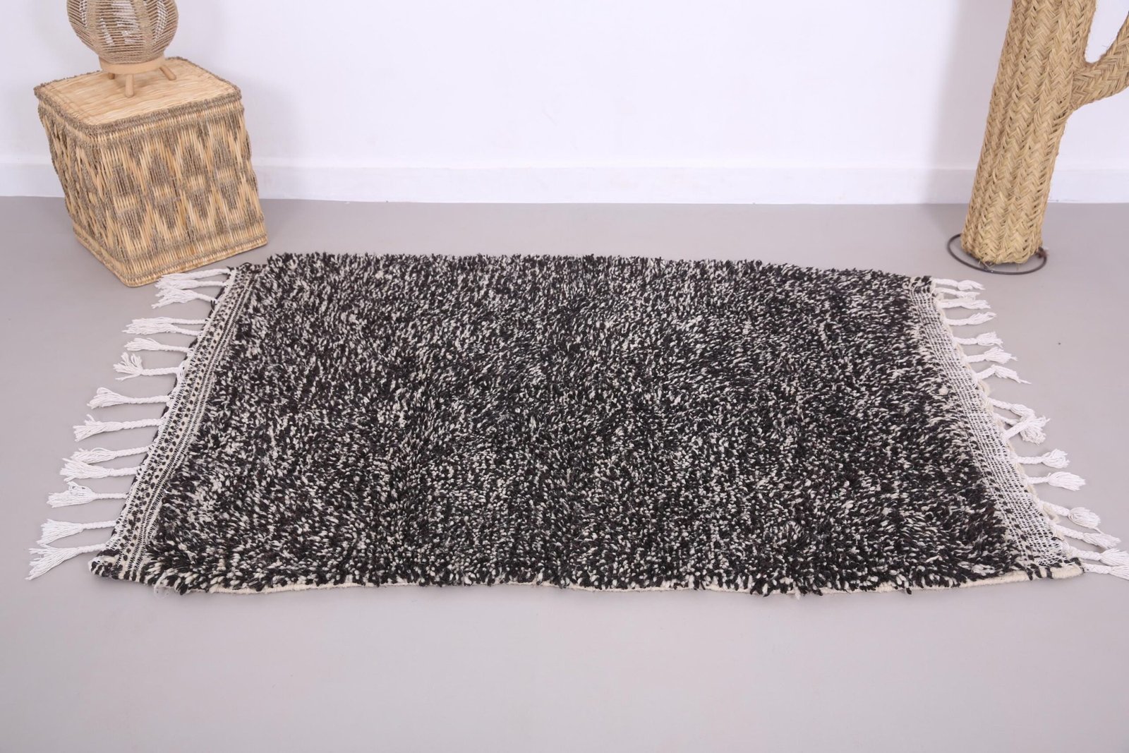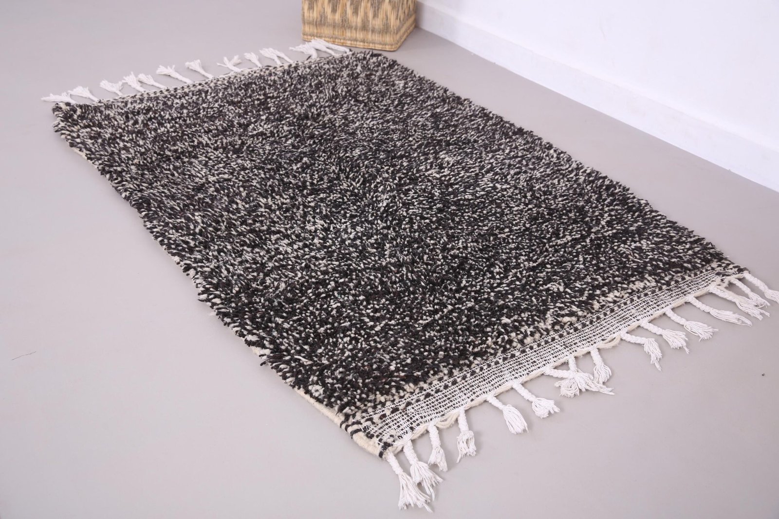 Small Black Dotted Beni Ourain Rug 3.8 x 5.4 ft, 100% Wool, Moroccan Rug