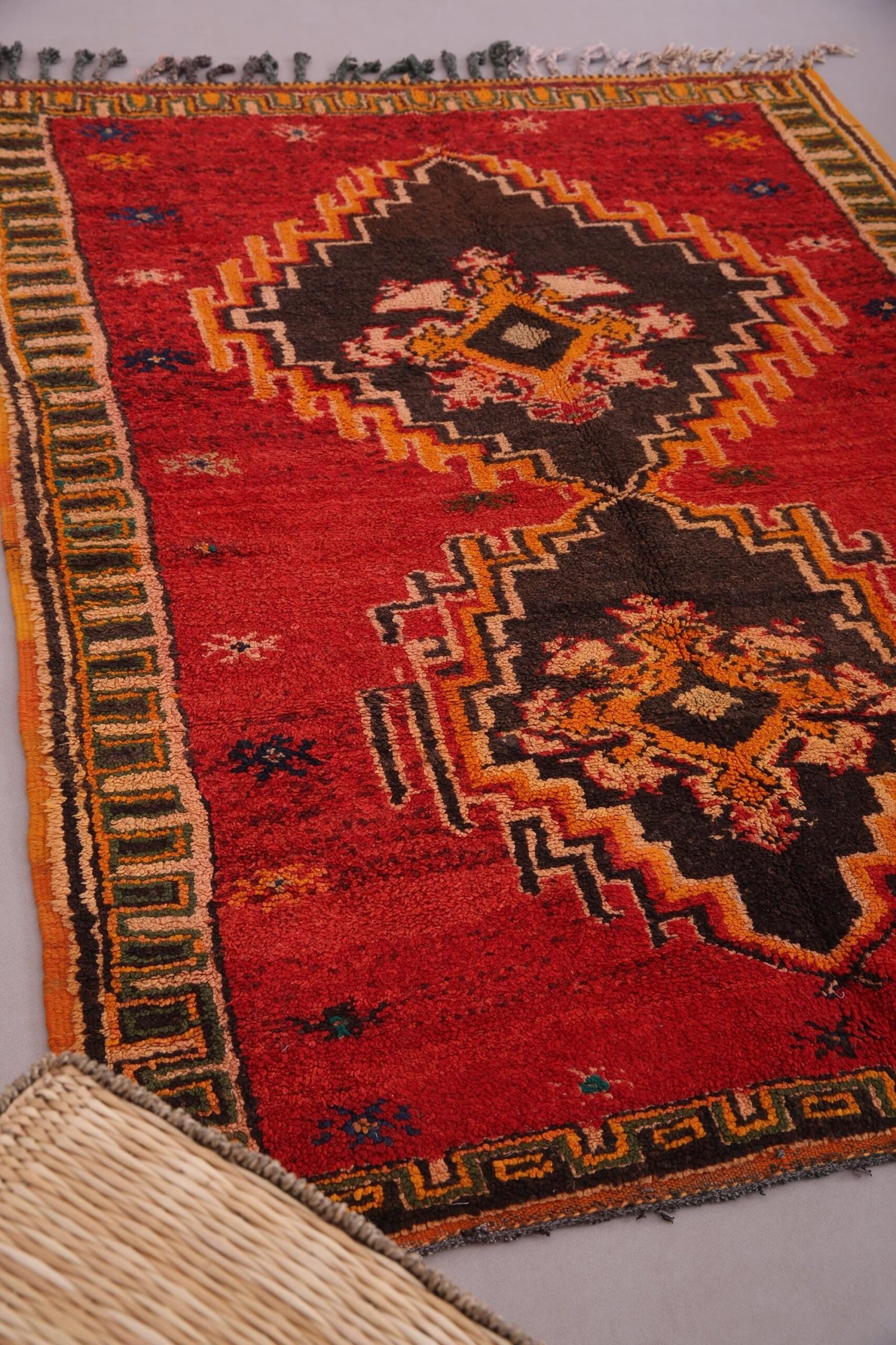 vintage Moroccan rug – handmade Moroccan rug – red Beni Mguild rug – authentic Berber rug – wool Moroccan carpet – tribal design rug – boho chic decor – Moroccan wool rug – vintage Berber carpet – red tribal rug – Moroccan home decor – Atlas Mountains rug – rustic wool rug – Moroccan area rug – unique Moroccan rug