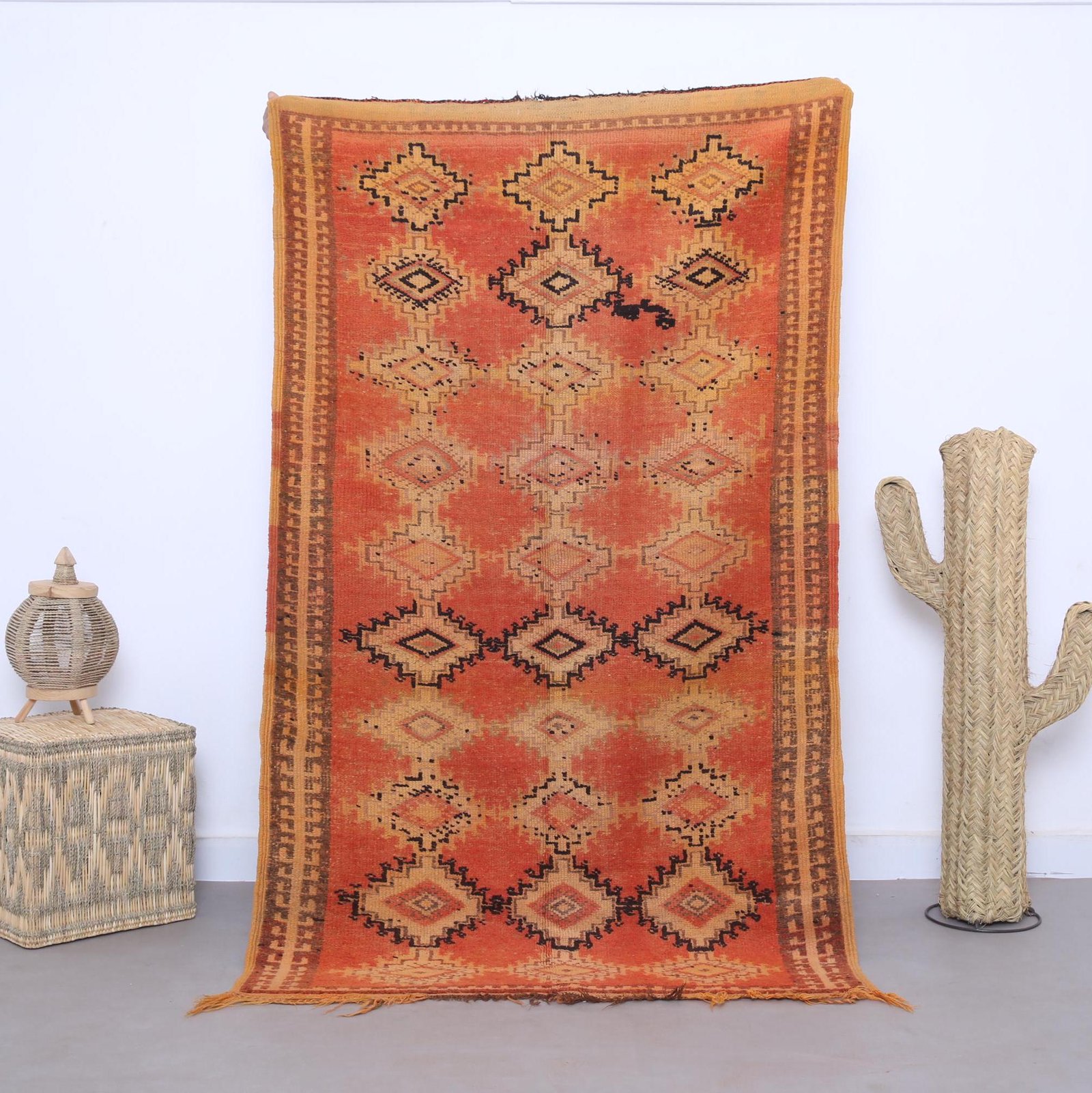 Vintage authentic taznakht rug 4 FT X 6 FT – Handmade Wool Berber Carpet – Boho Chic Tribal Area Rug – Moroccan Home Decor – rare rug