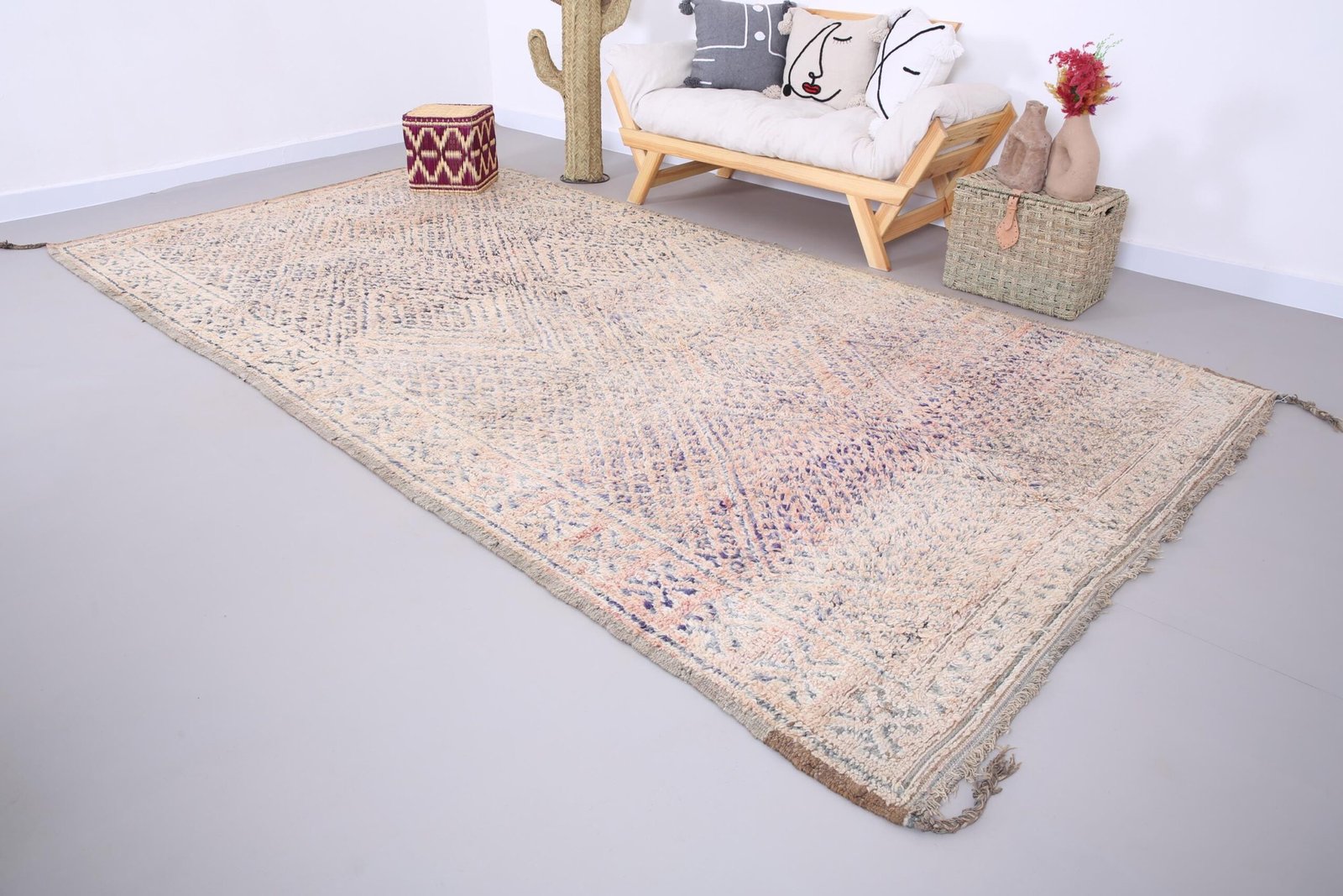Vintage Beni Mguild Rug 6.4 x 12.5 FT: Handmade Moroccan Wool Berber Rug