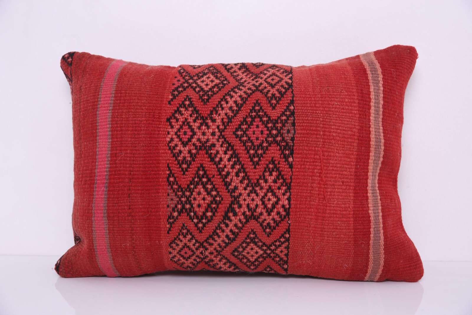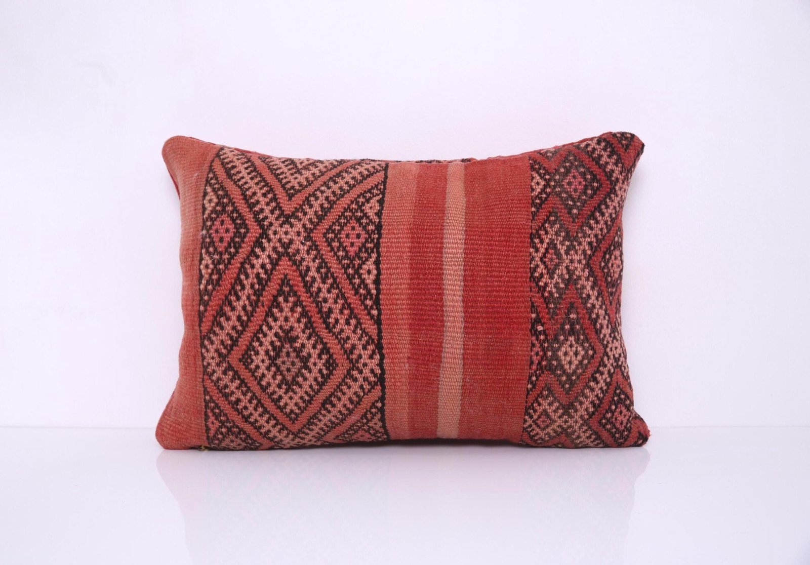 Vintage Moroccan Pillow 16.9”x 24.8″ – Kilim Pillowcase – Handmade pillow cover – wool pillowcase – Berber Pillowcase – vintage pillowcase