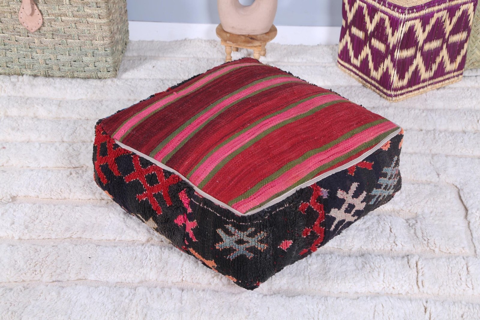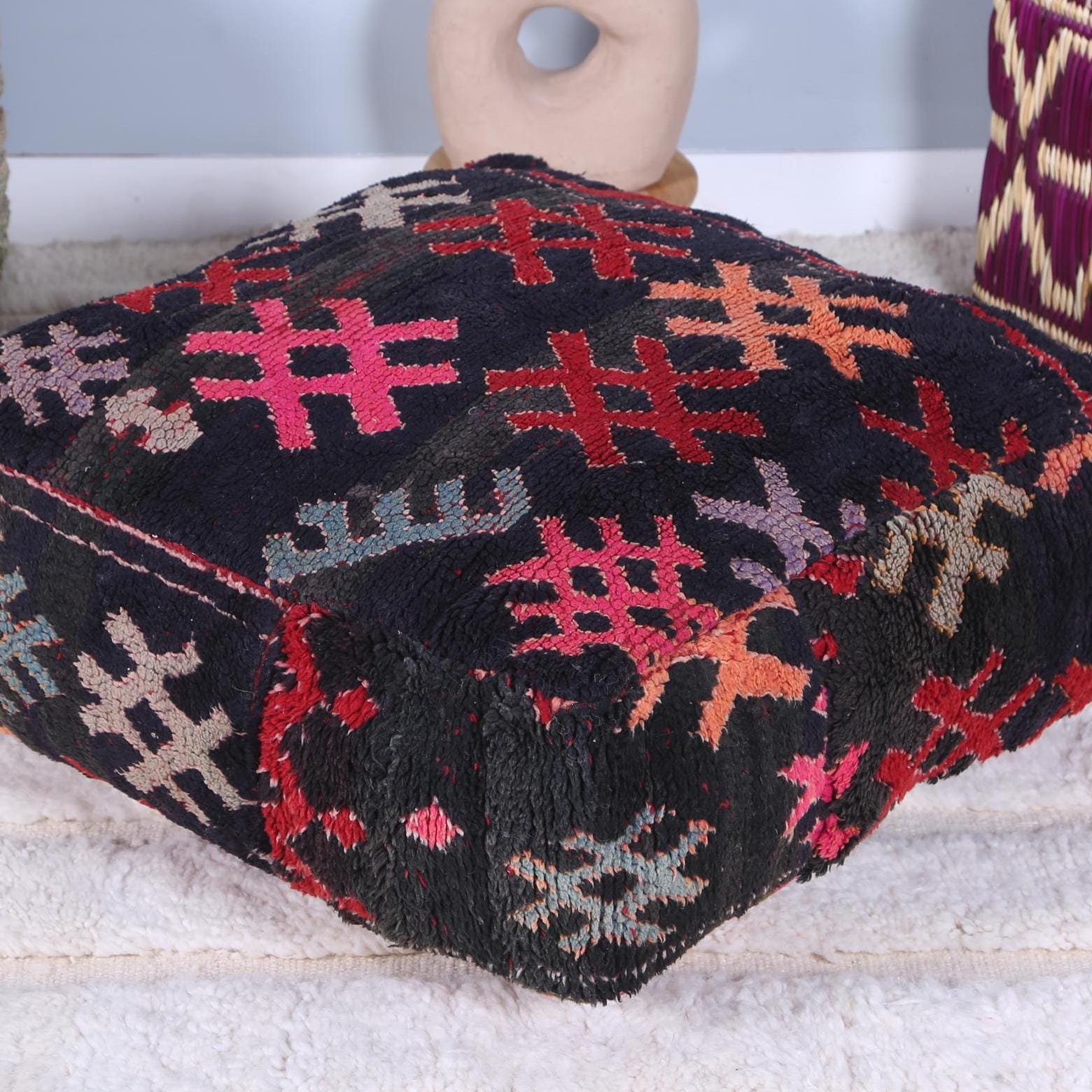 Add a touch of authentic Moroccan charm to your home with our vintage handmade Moroccan ottoman poufs and floor pillows. Crafted by skilled Berber artisans using time-honored techniques, each piece tells a unique story of tradition, culture, and craftsmanship.