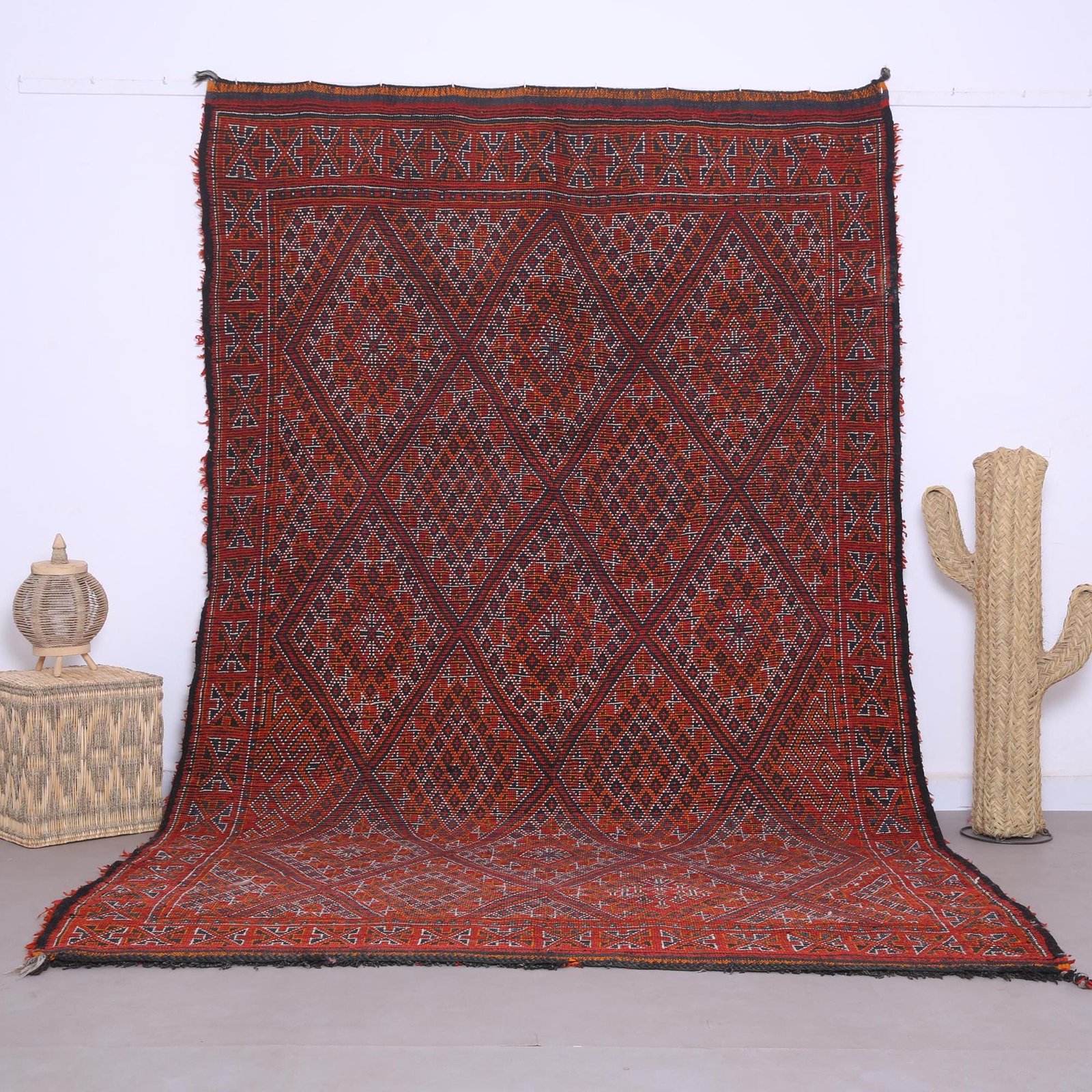 Vintage Red Beni Mguild Rug, Moroccan Rug 6.4 x 10.4 FT
