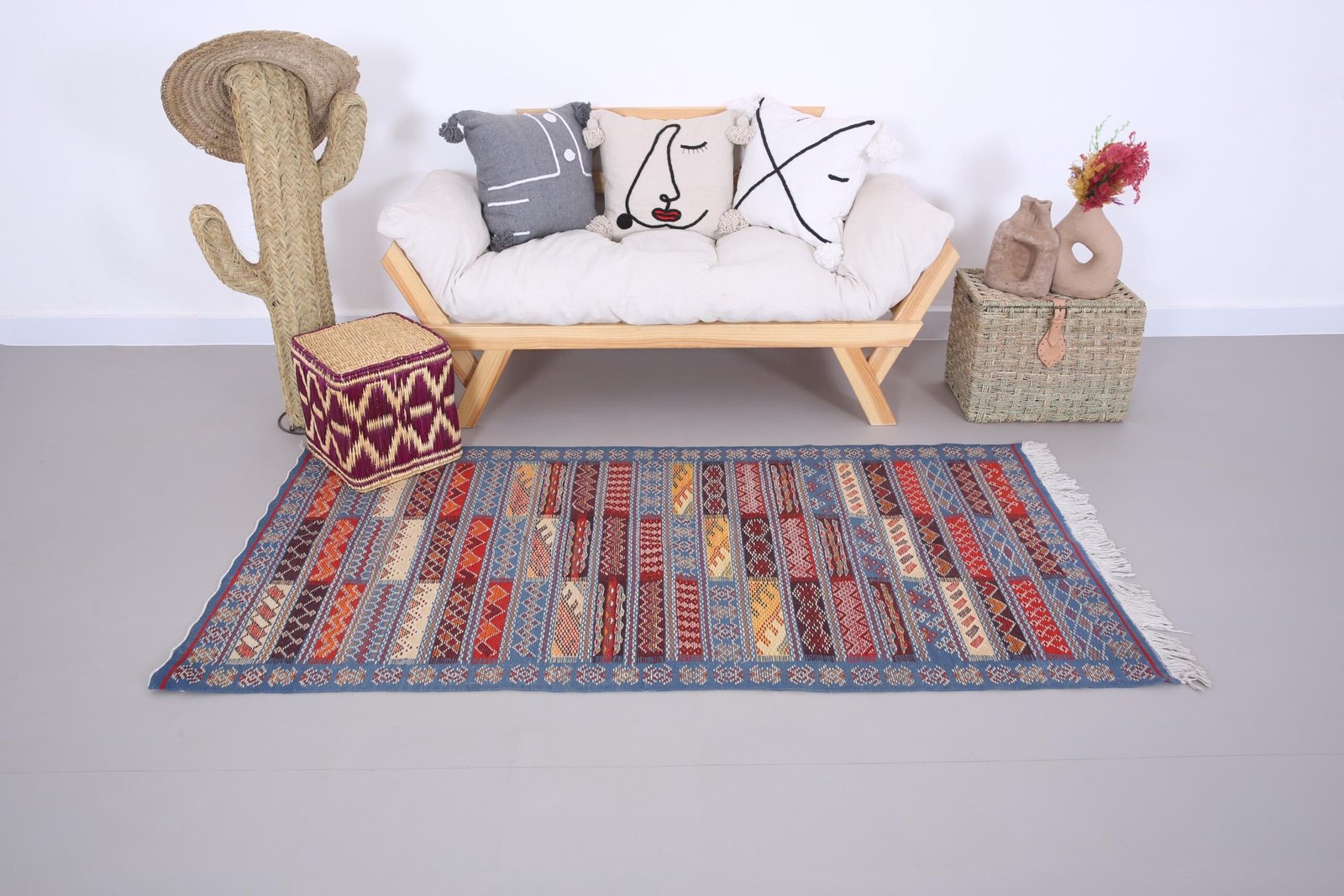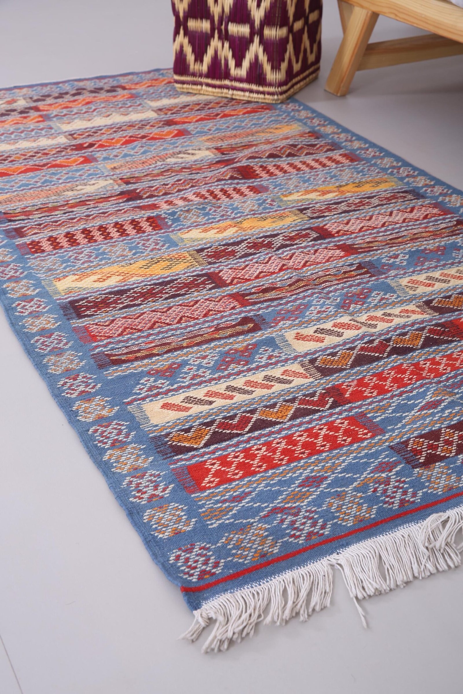 Vintage taznakht kilim rug 3.3 FT X 6.5 FT- Handmade Wool Berber rug – Boho Chic Tribal Area Rug – Moroccan Home Decor – handwoven kilim rug