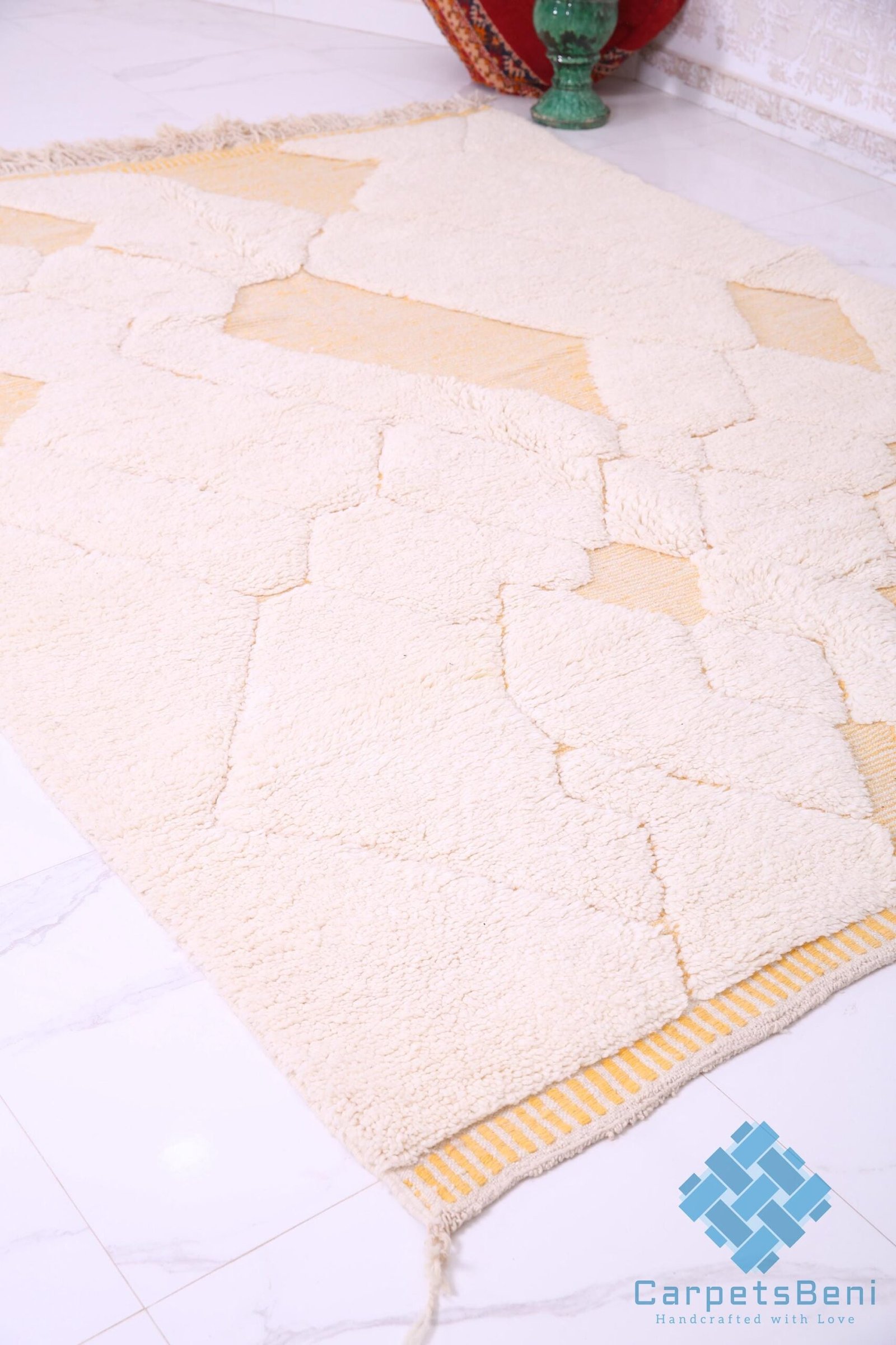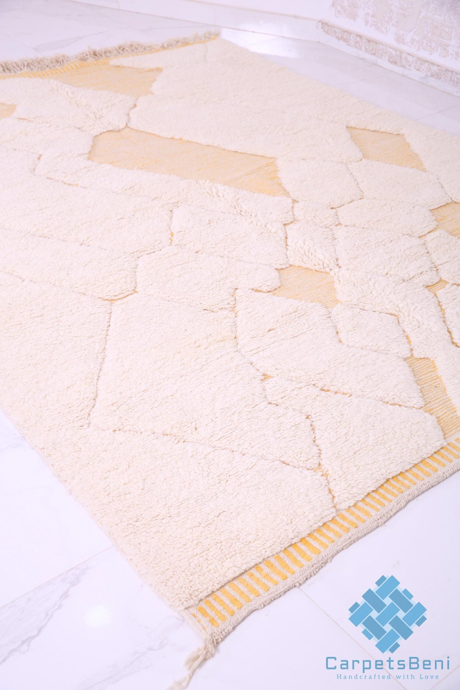 Yellow Moroccan Rug – Handmade Moroccan rug – Berber rug – 100% wool rug – authentic Moroccan rug – custom wool rug – Moroccan Beni Ourain – Azilal rug – Boucherouite rug – vintage Moroccan rug – wool area rug – boho decor – Moroccan decor – luxury rug – Moroccan home decor – living room rug – handmade berber rug – moroccan rug – carved rug – genuine Lamb wool – ivory rug – handcrafted rug – all wool rug